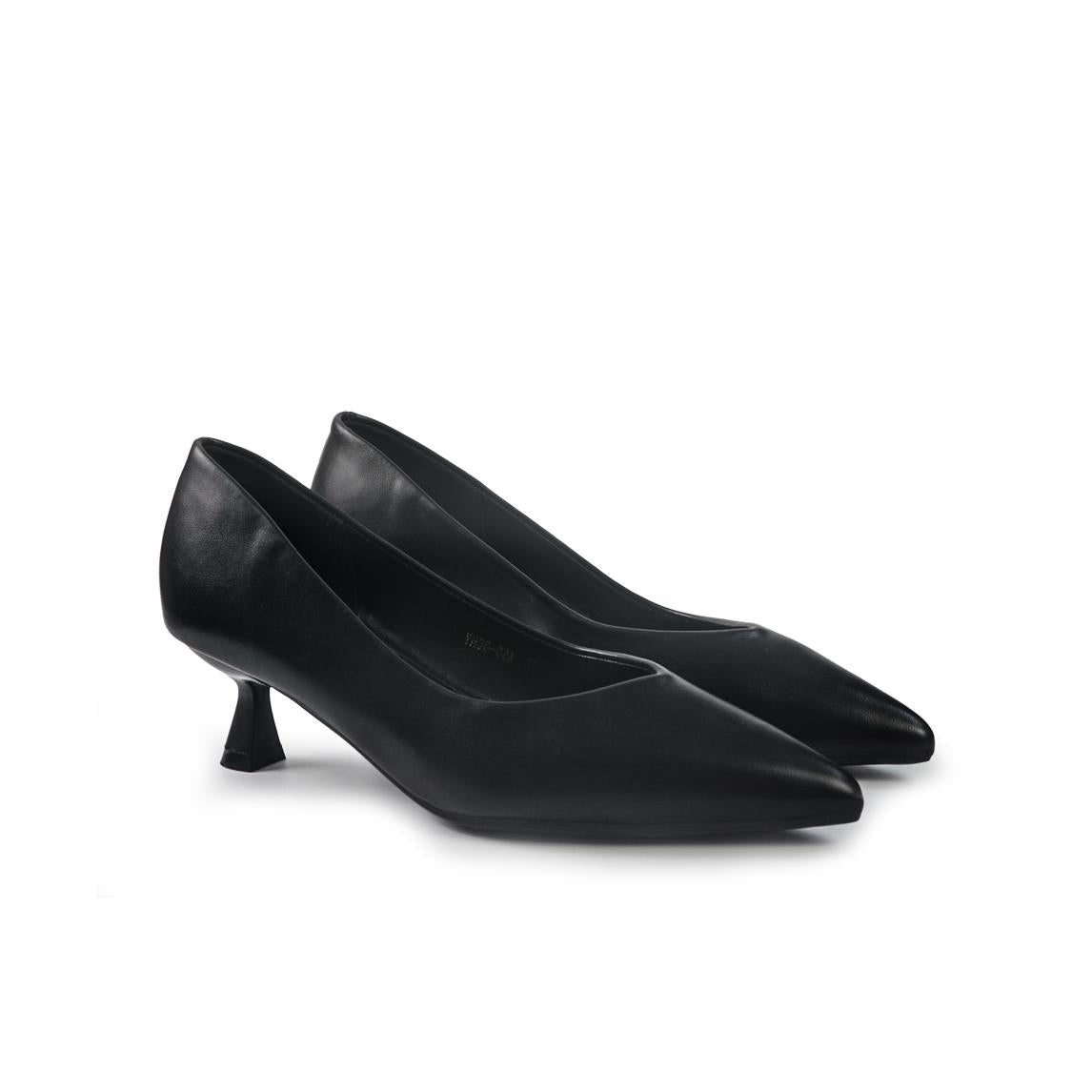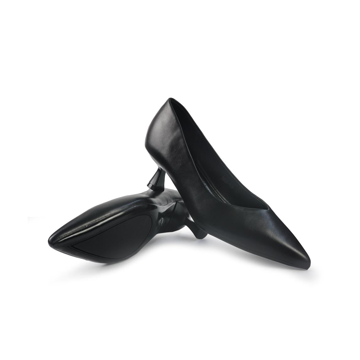 Decollete Donna a Punta Tacco Rocchetto Basso in Pelle Nero