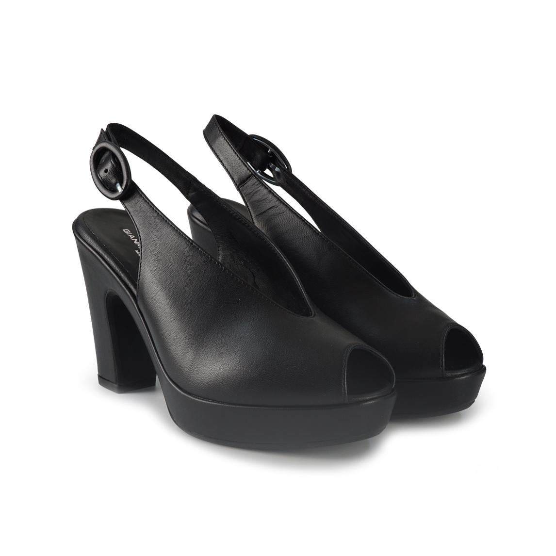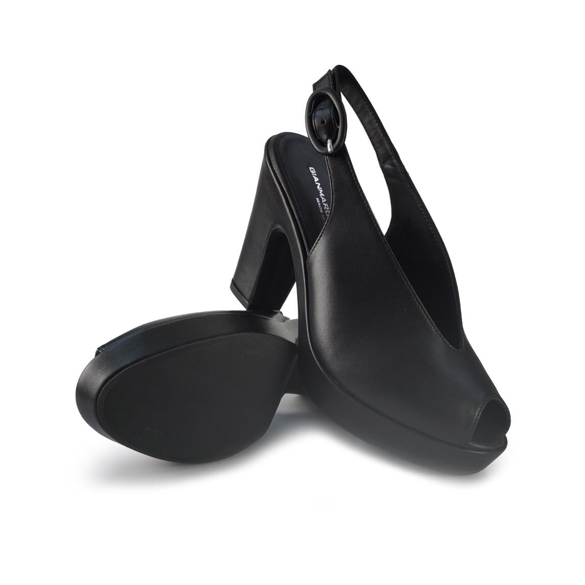 Gianmarco Sorelli Sandali Chanel con Tacco Alto e Plateau in Pele Nera