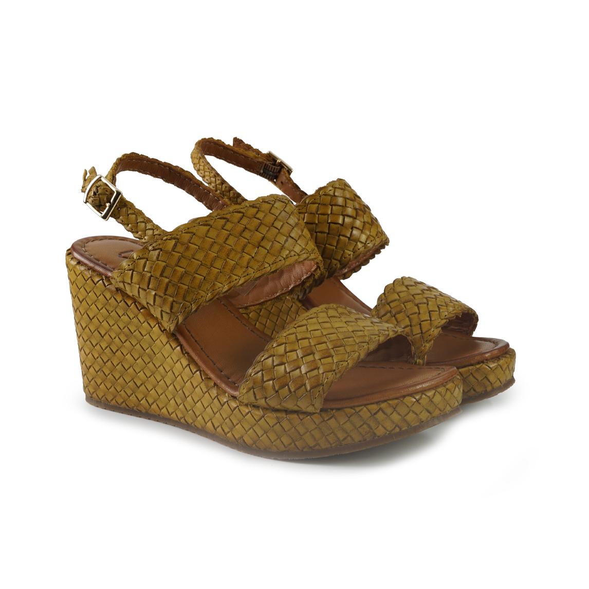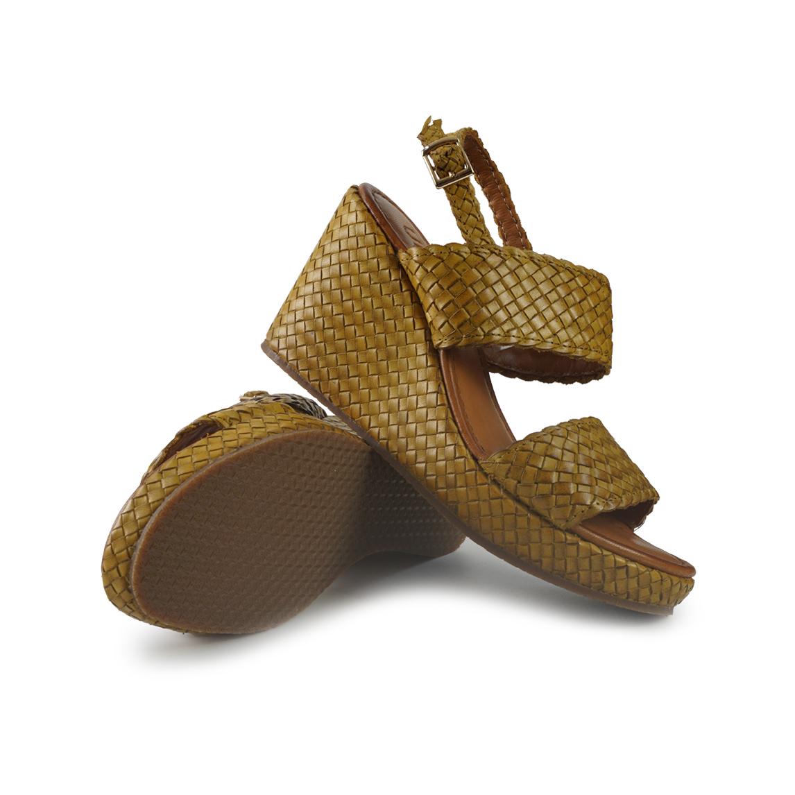 Vueva Sandali Zeppa Alta Donna in Pelle Intrecciata Giallo
