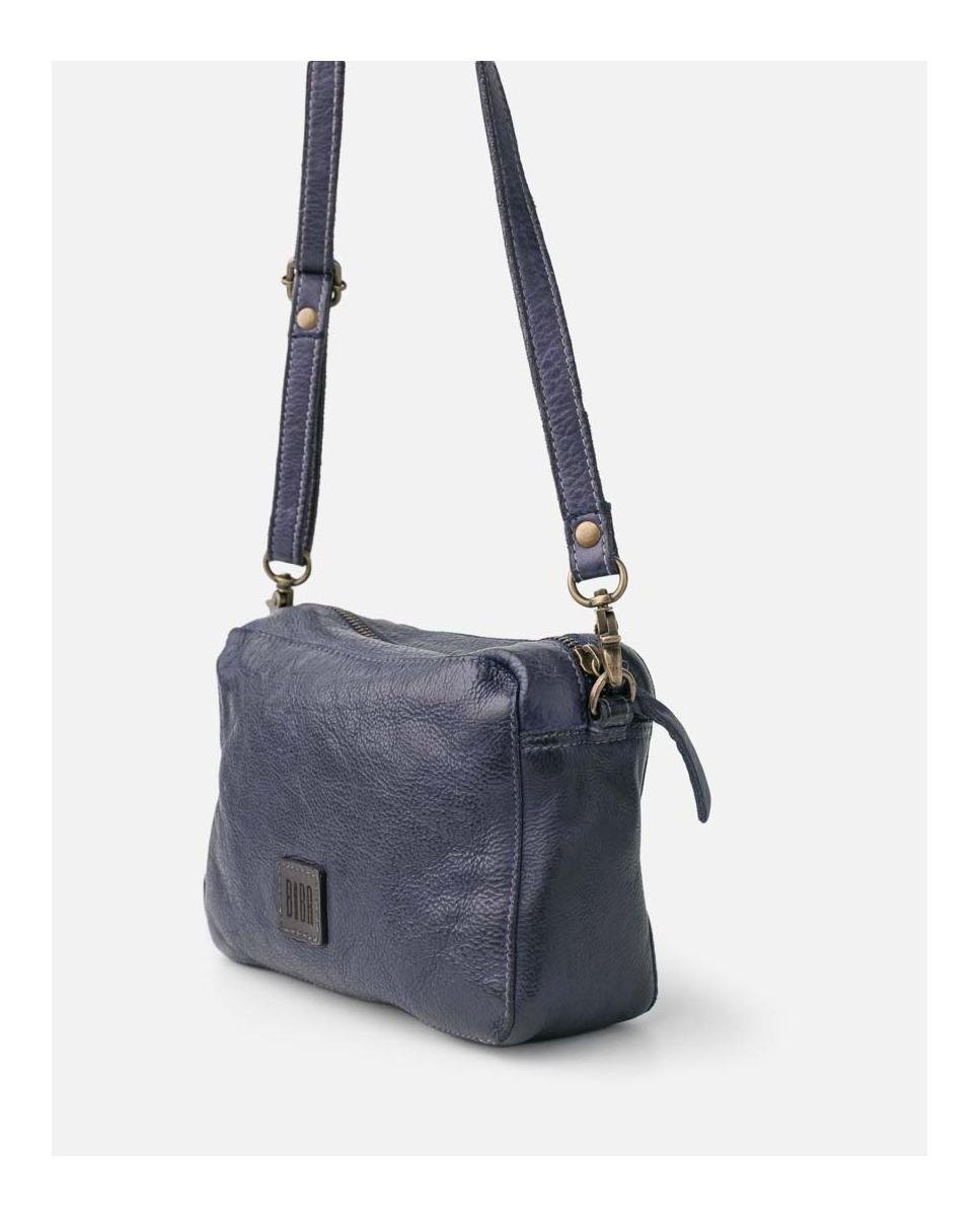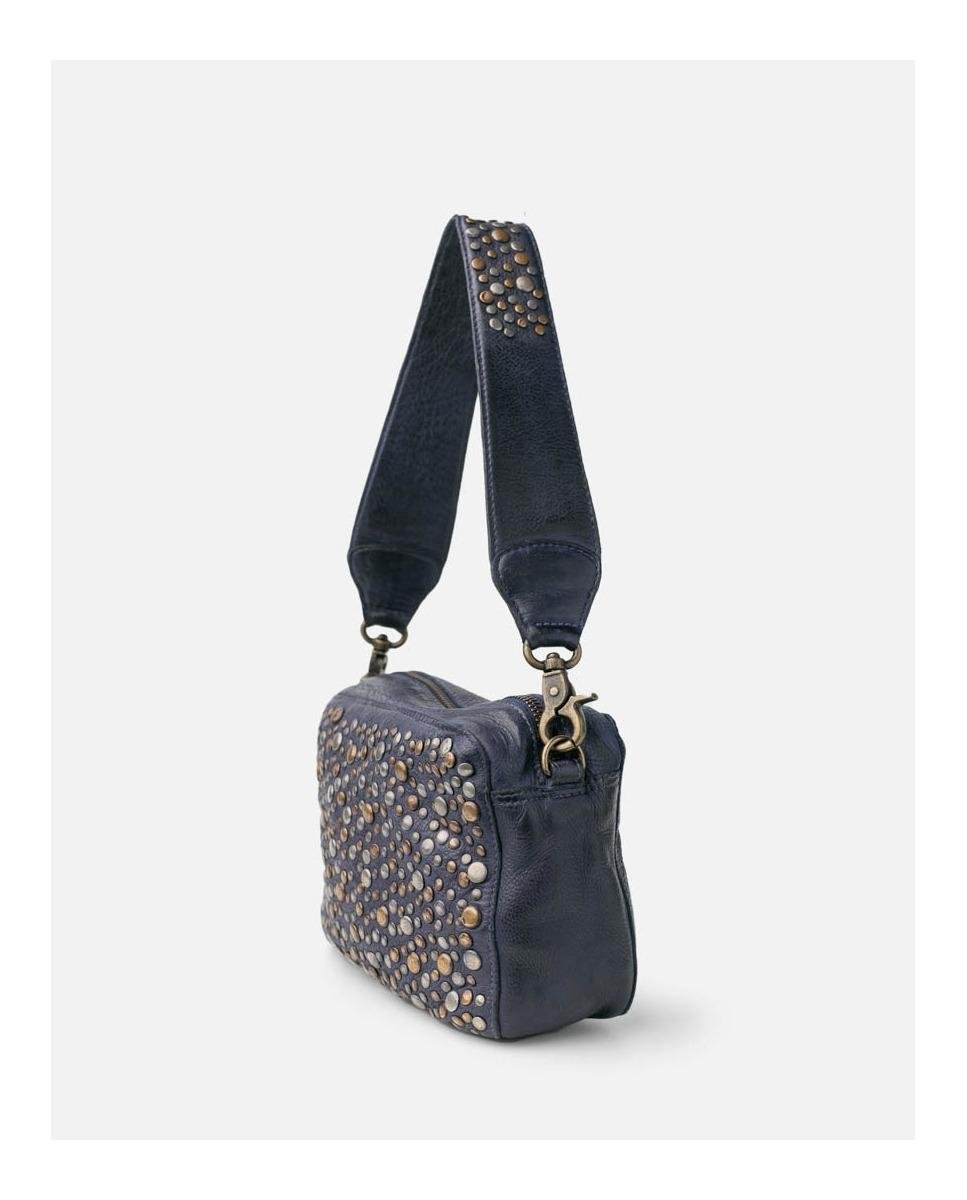 • Piccola borsa a tracolla squadrata in vacchetta lavata.