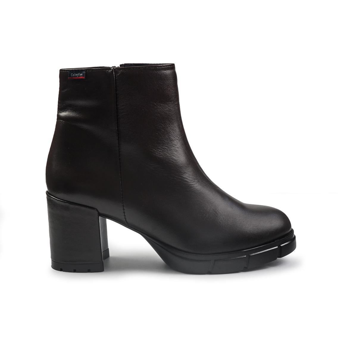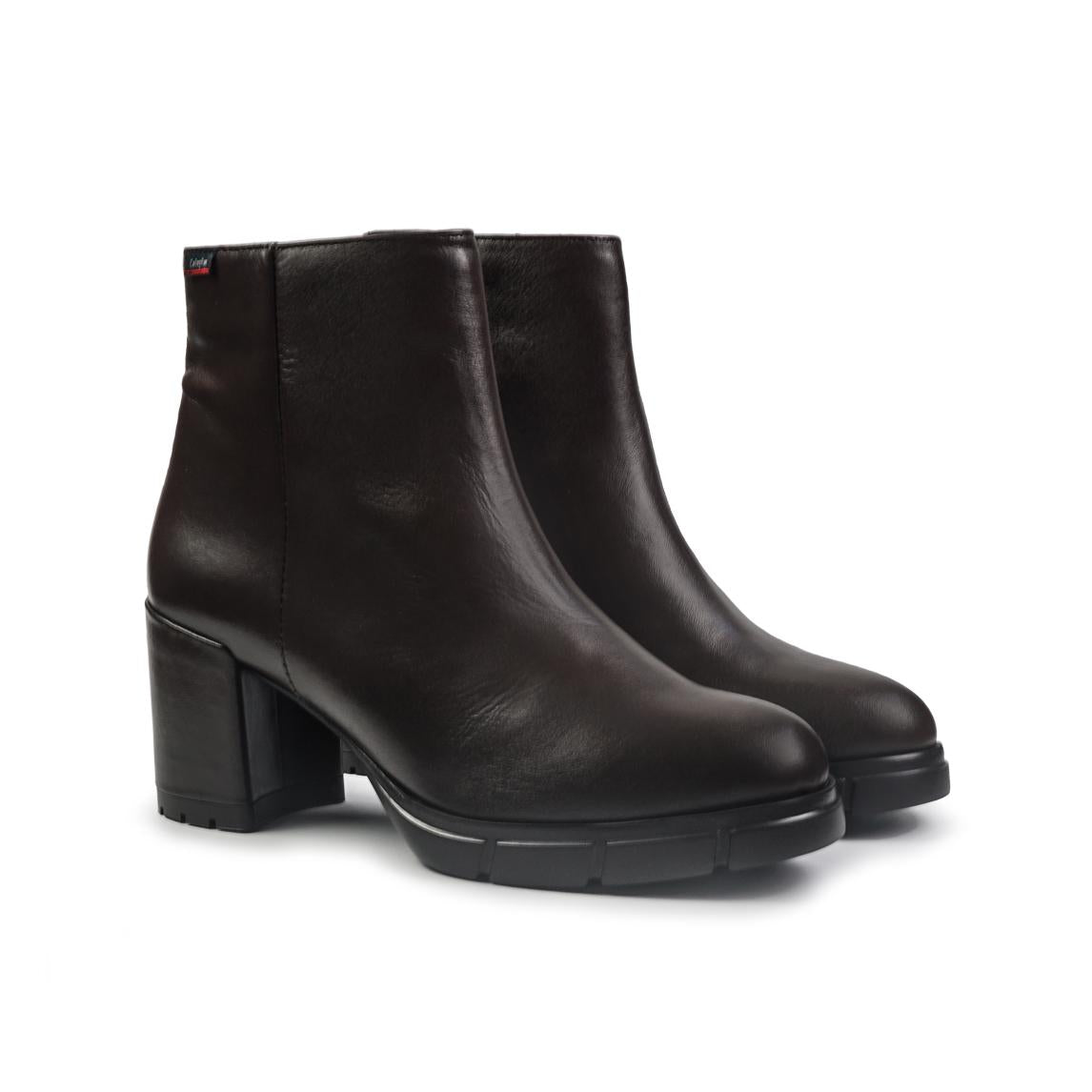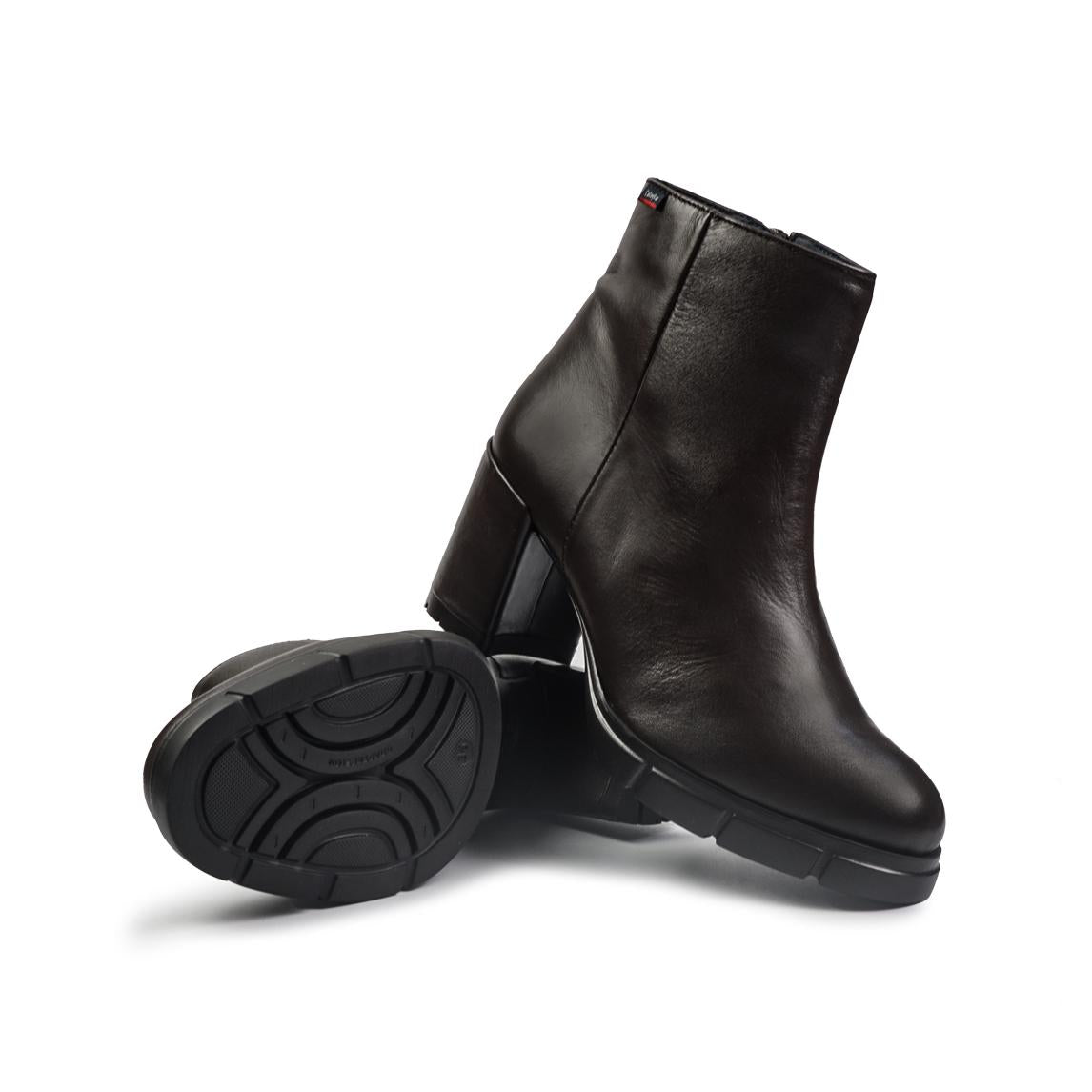 Stivaletto in pelle con fondo gomma brevettato Adaptaction e tacco rivestito cuoio. Zip interna.