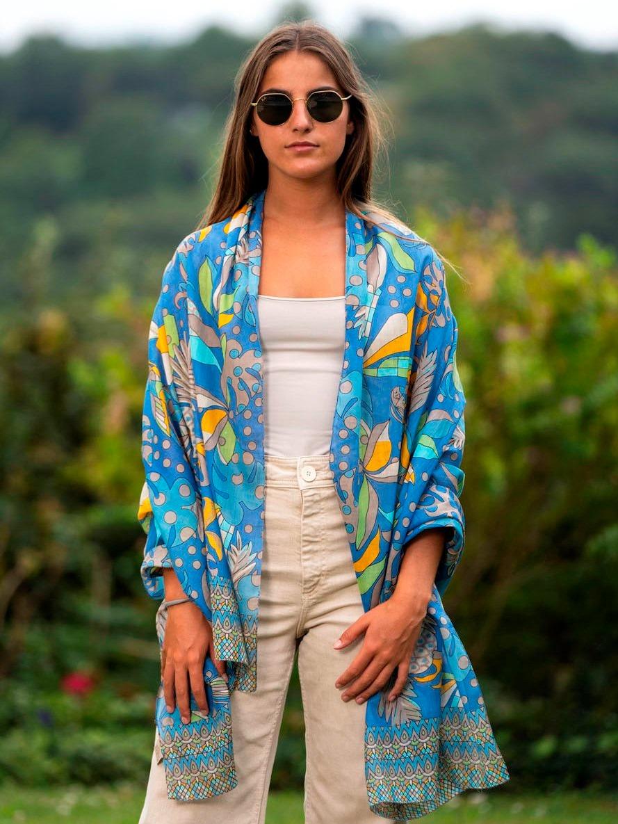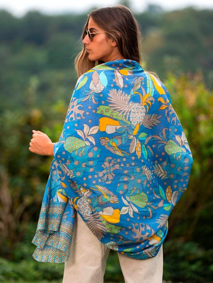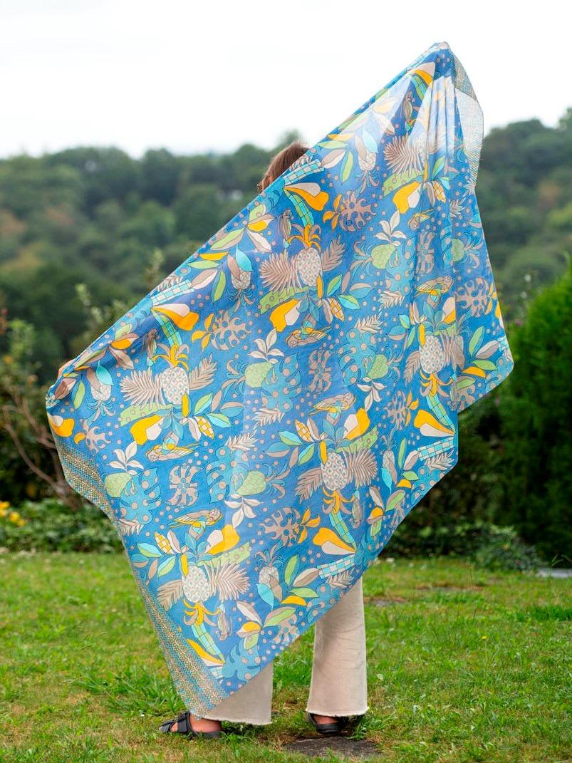 Foulard Pareo in Cotone Stampato Fantasia Blu