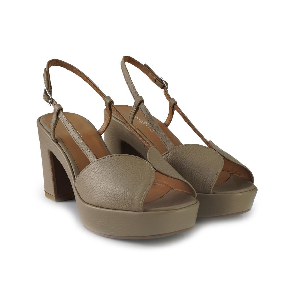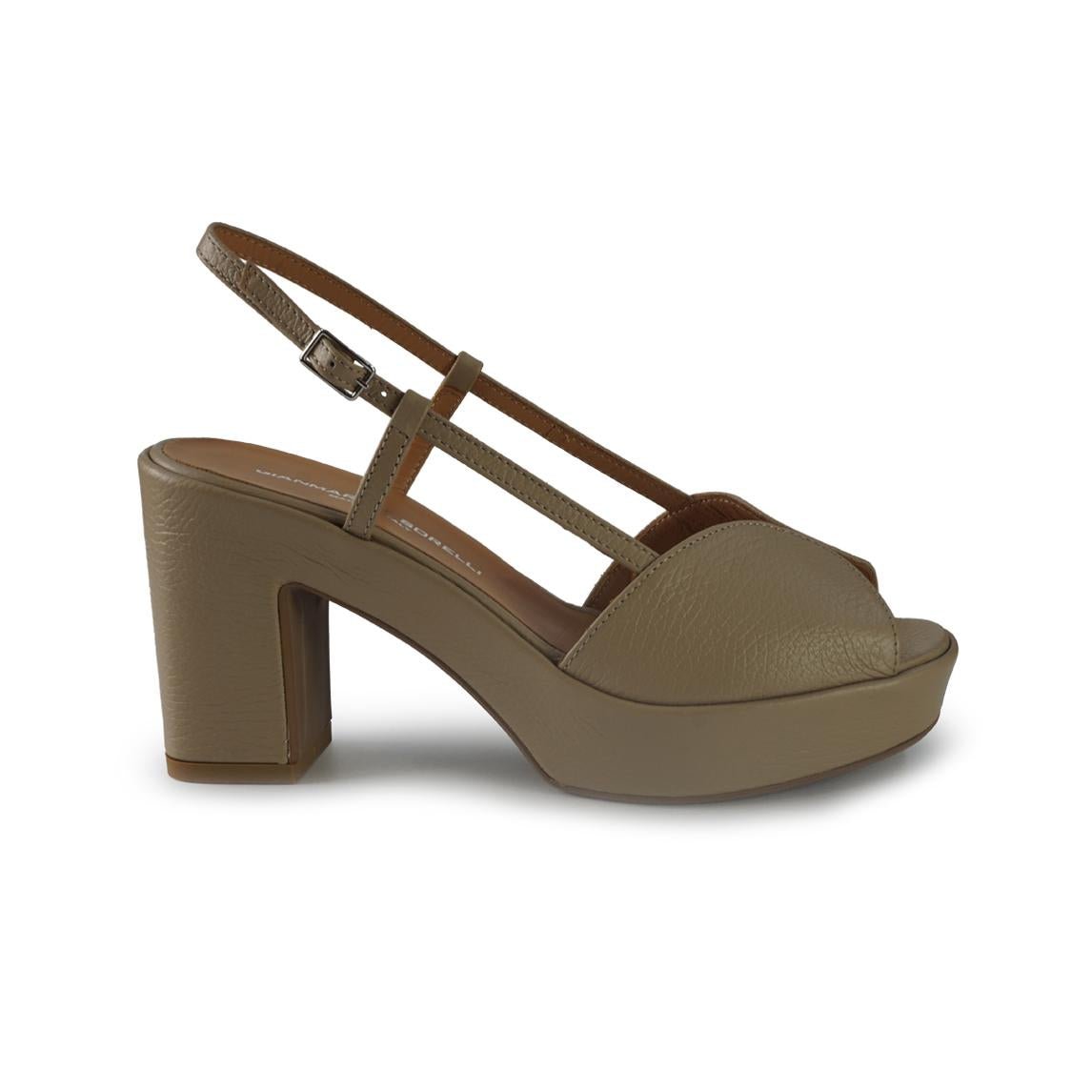 Gianmarco Sorelli Sandali Donna con Tacco e Plateau in Pelle Fango