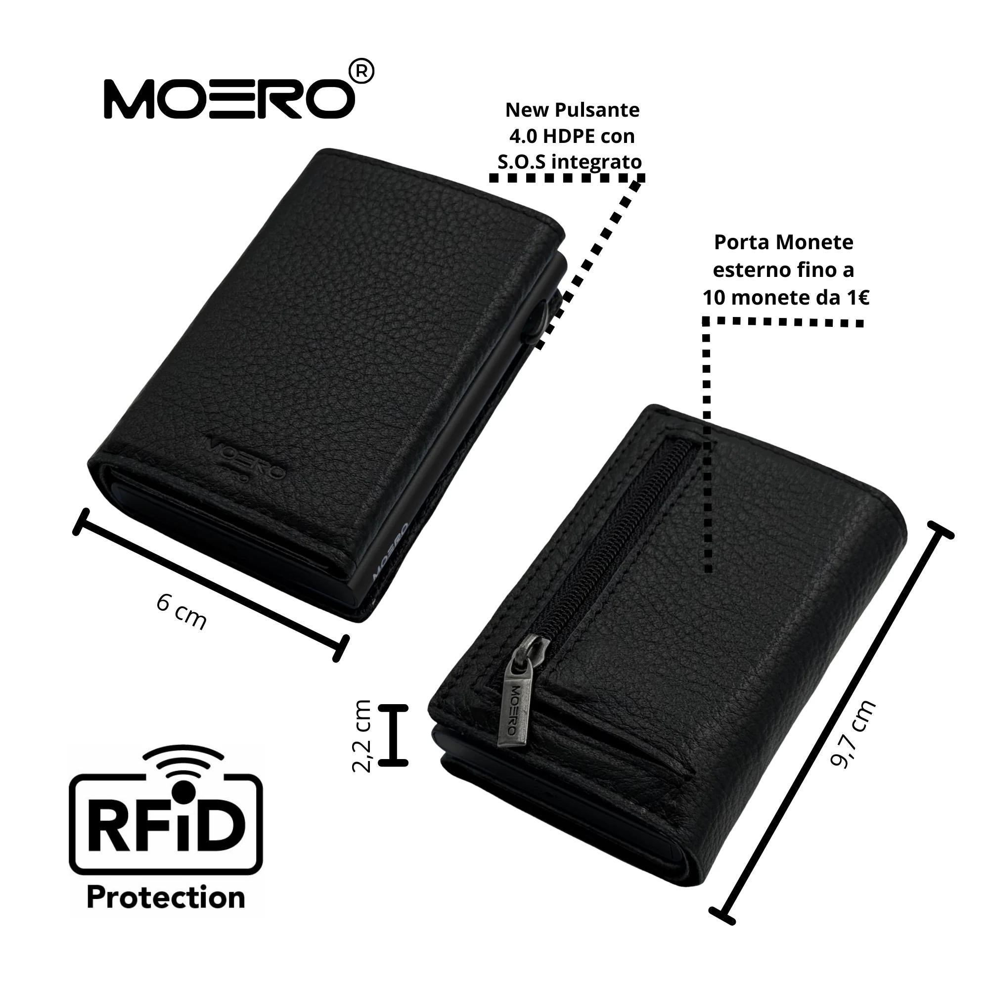 Moero è molto di più di un semplice portafoglio. Benchè compatto è ben organizzato in tutti i suoi pochi centimetri. Dal design ricercato e minimale, riesce a contenere banconote, monete e fino a 13 tessere come carte di credito, biglietti da visita e documenti.