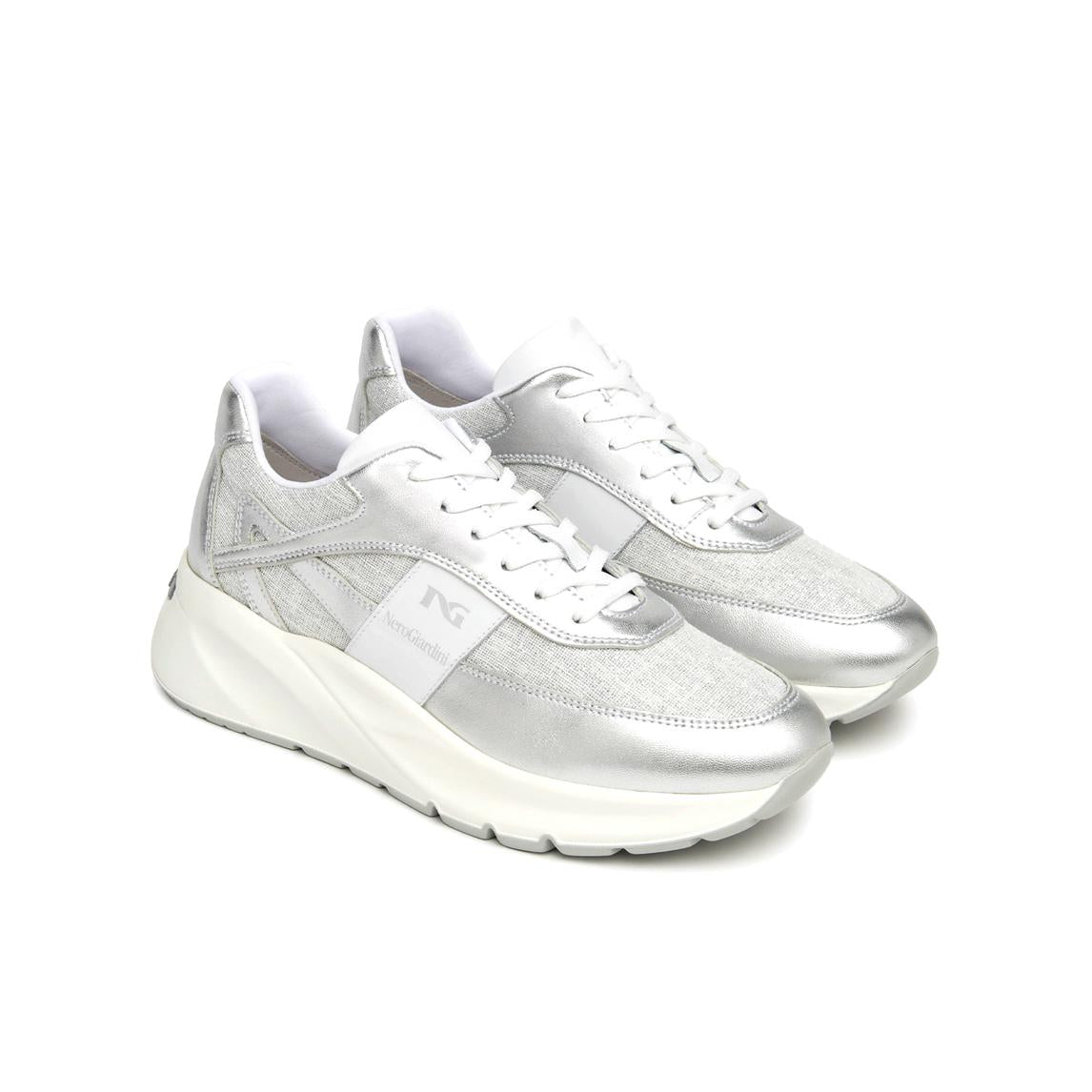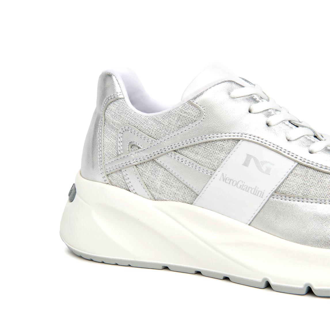 NeroGiardini Sneakers Donna in Pelle e Tessuto Argento