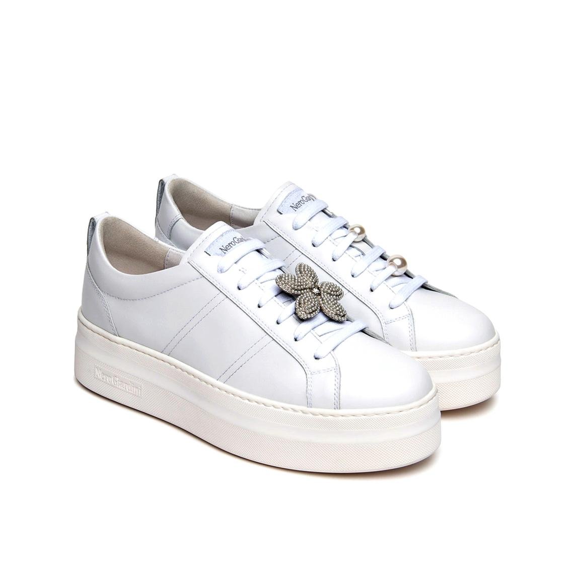 NeroGiardini Sneakers Platform Donna in Pelle Bianca con Charms