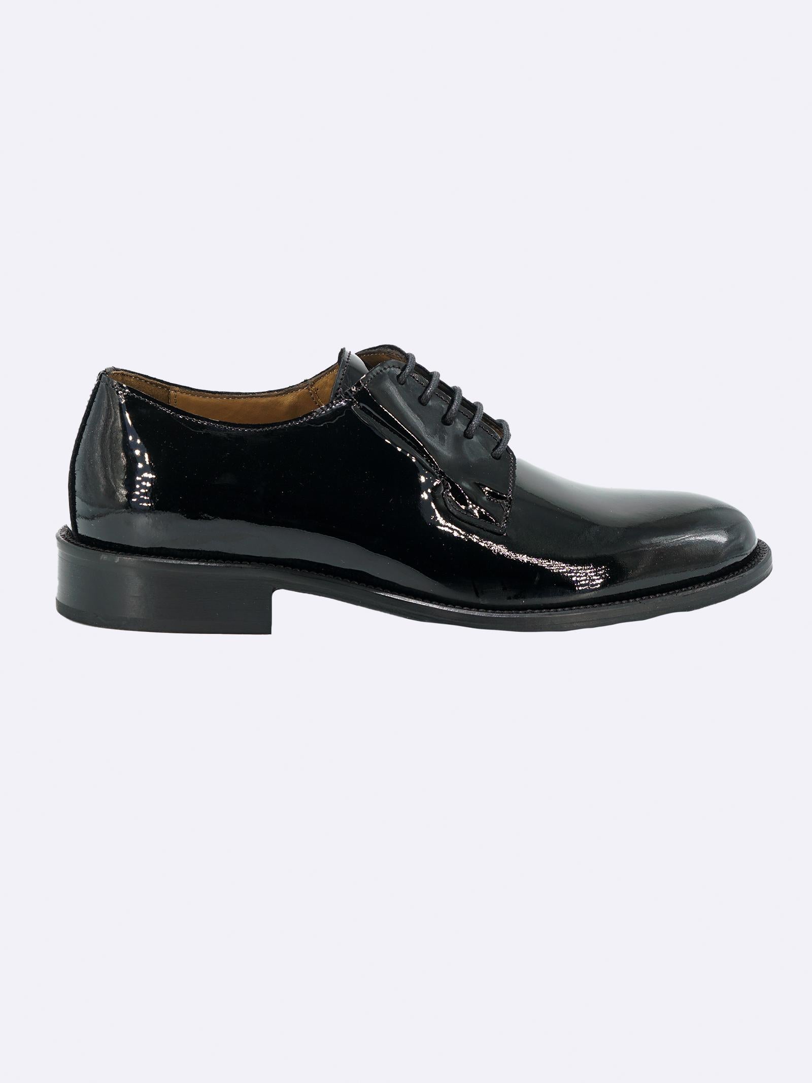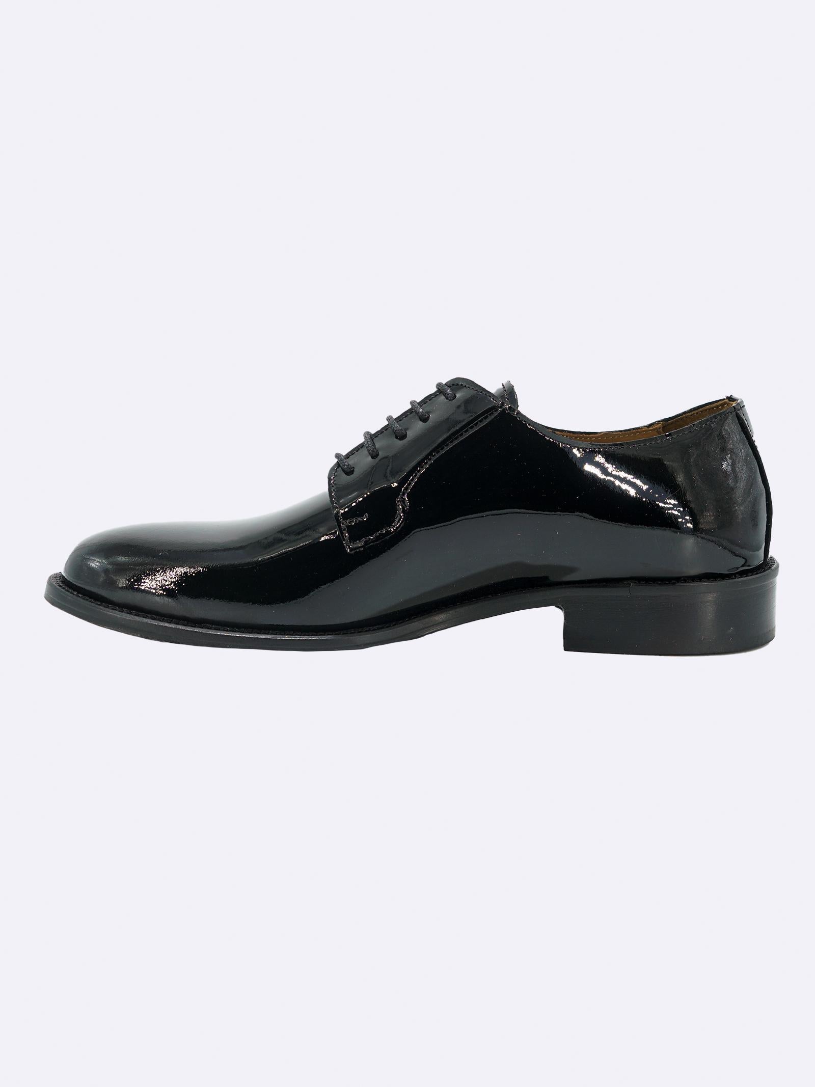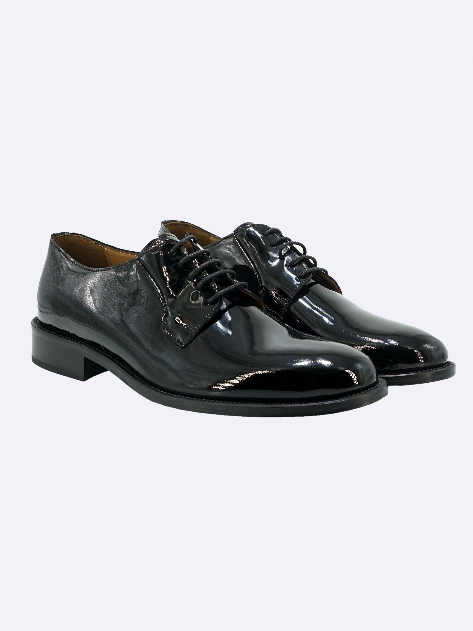 Elegant Men's Lace-up Groom Ceremony Black Patent Leather Bottom Stitched Smooth Derby