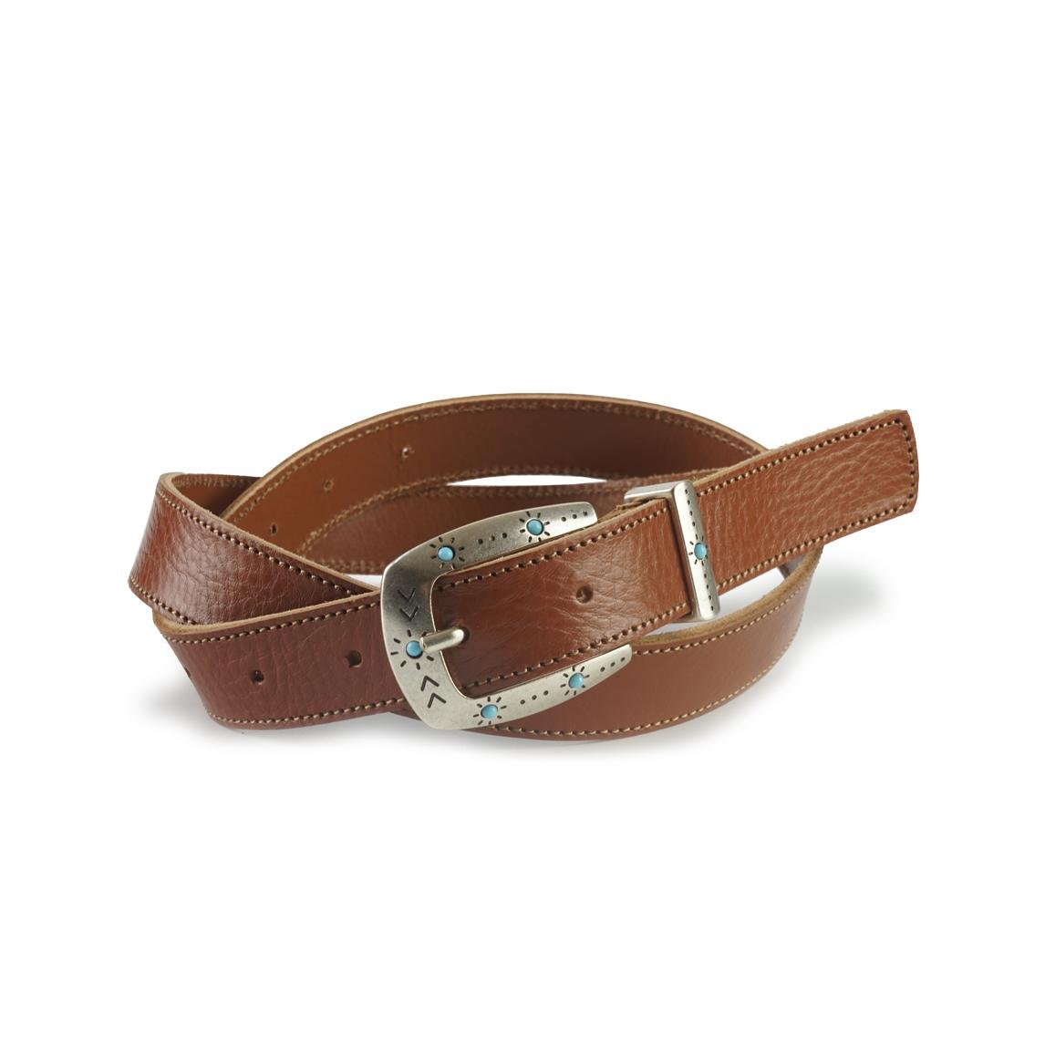 Cintura in pelle spessore 2,5 cm e fibbia con turchesi. La cinta è provvista fi vite per eventuali regolazioni di misura.