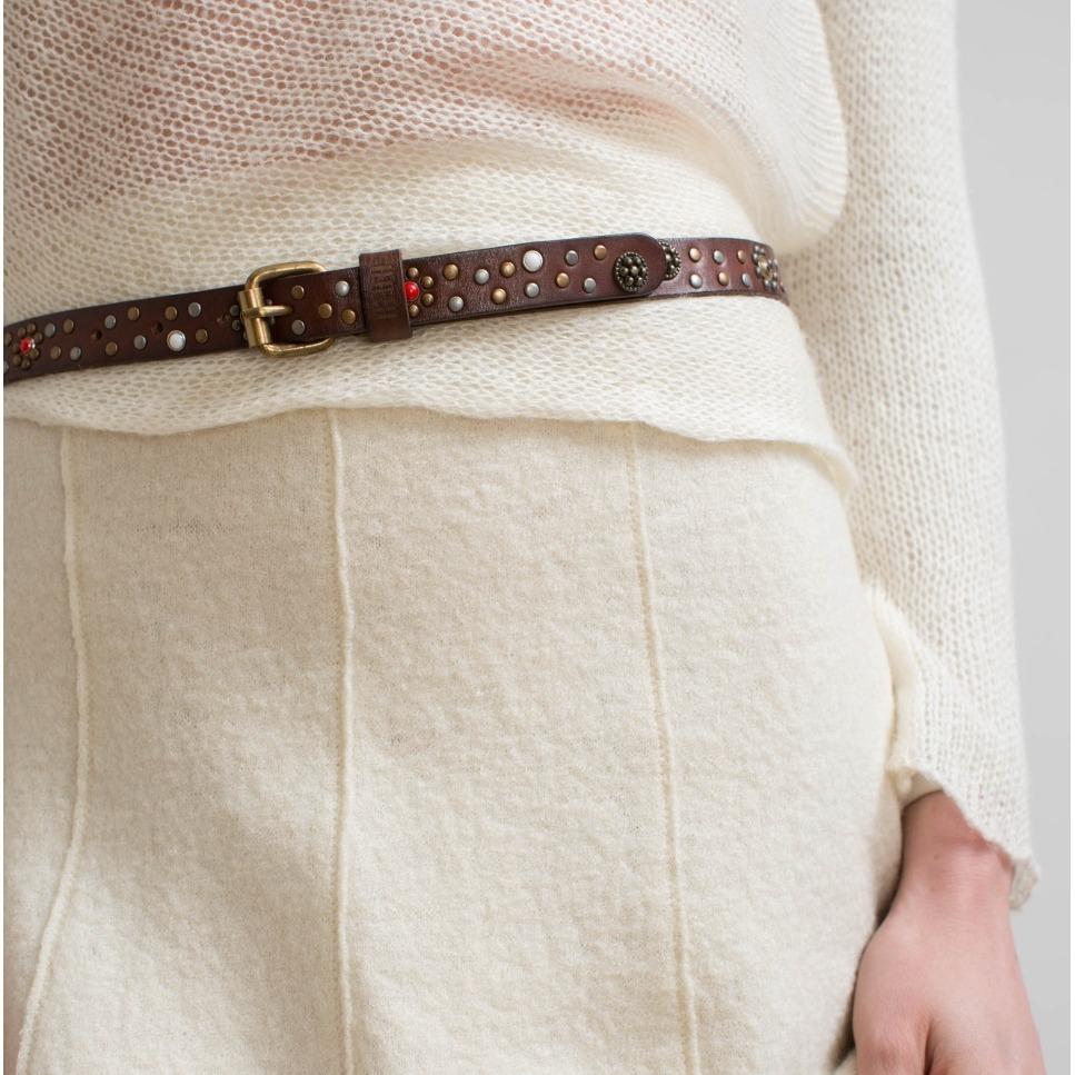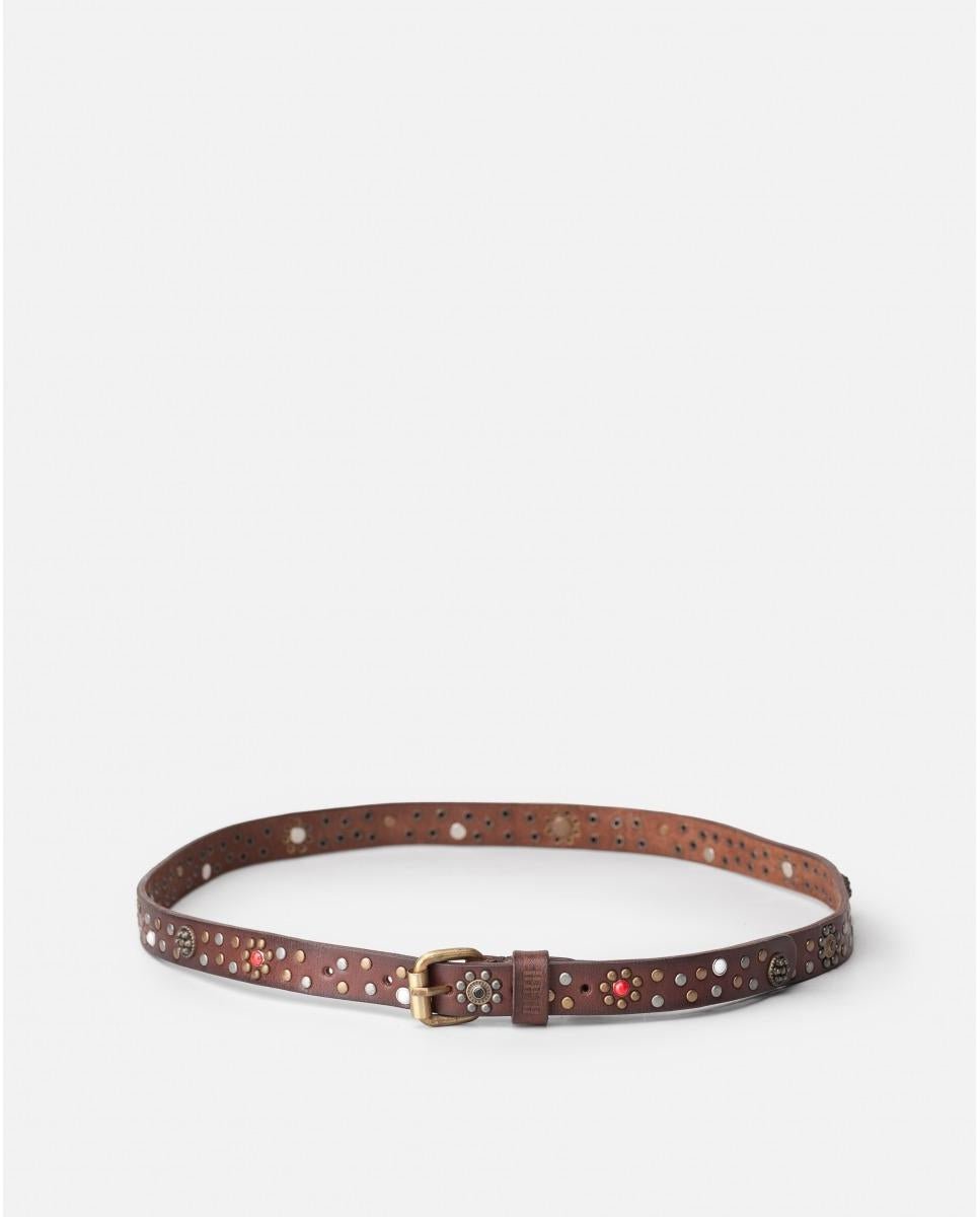 • Cintura in pelle bovina. Borchie di diversi colori e forme.