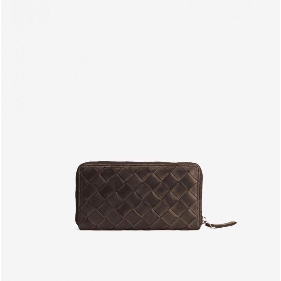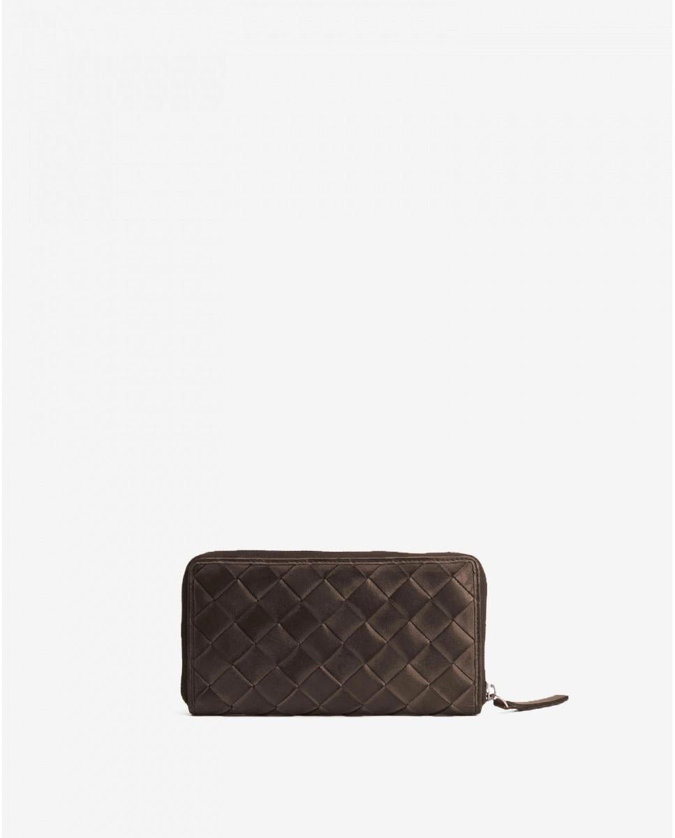 Biba Portafogli Donna in Pelle Intrecciata Marrone con Zip