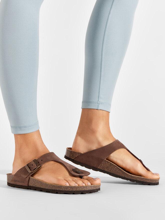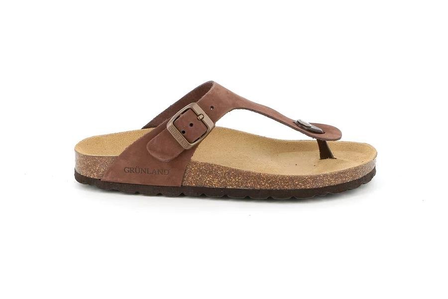Sandalia tipo chancla de la línea Grunland Bio con hebilla ajustable y plantilla anatómica de corcho.