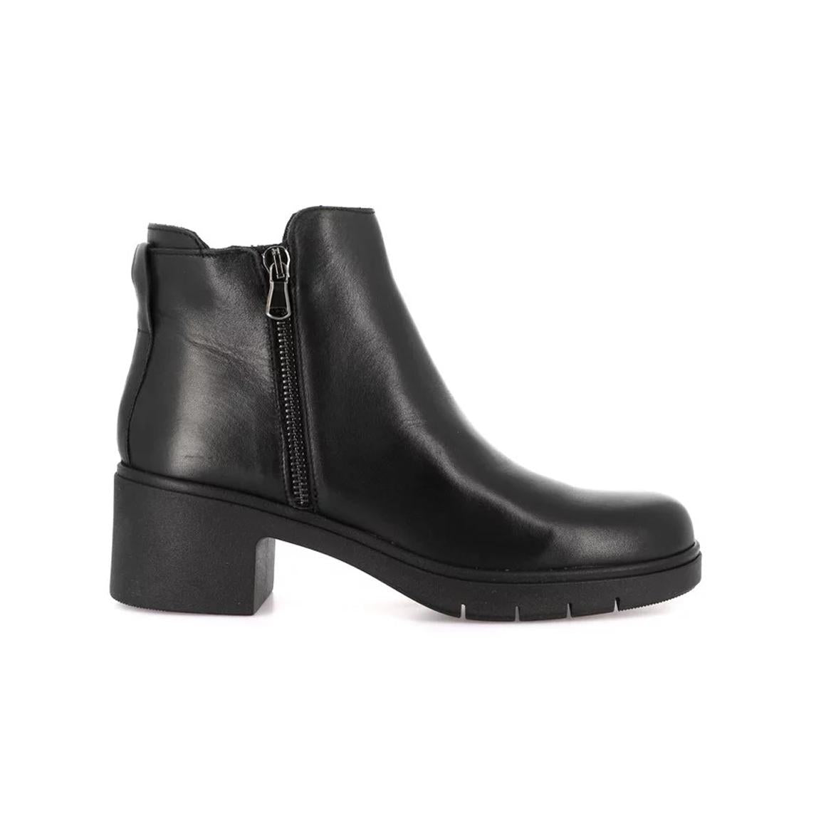 Eleganza e comfort nello stivaletto in pelle nera, simbolo di versatilità e stile contemporaneo.