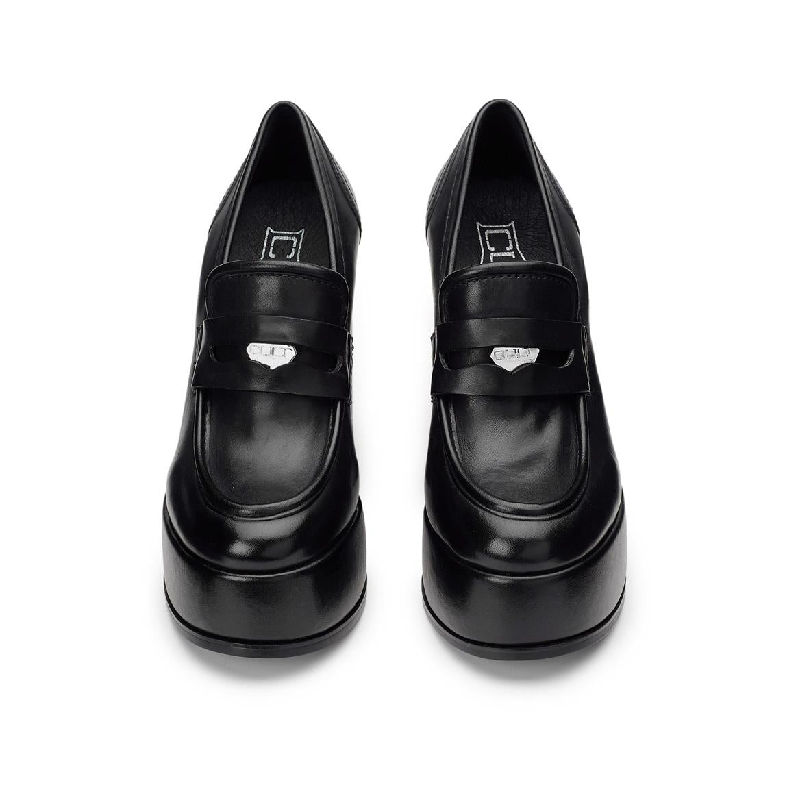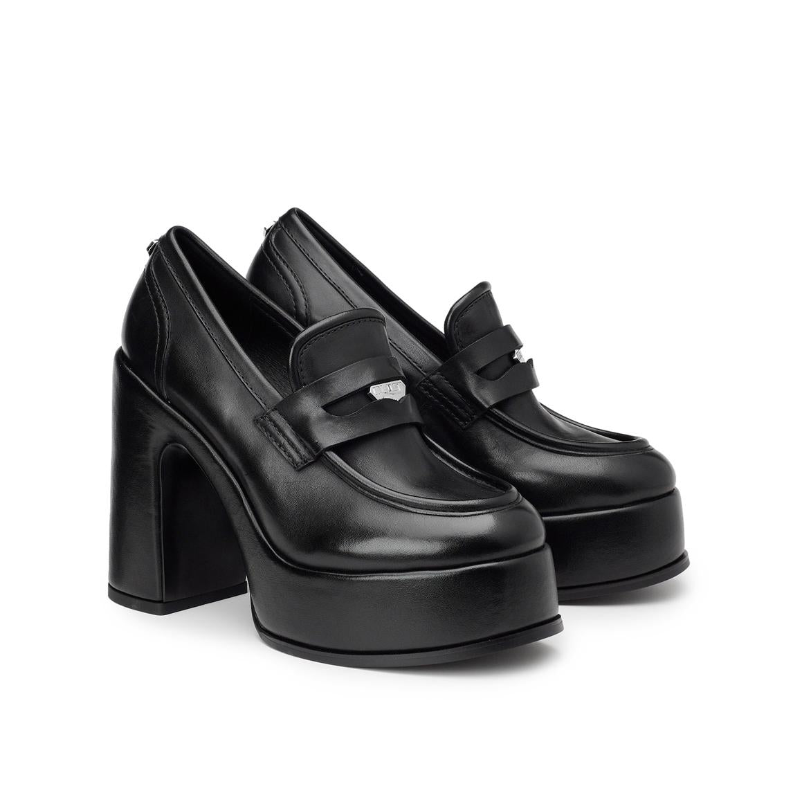 Mocassini Cult Donna con Tacco e Plateau in Pelle Nero