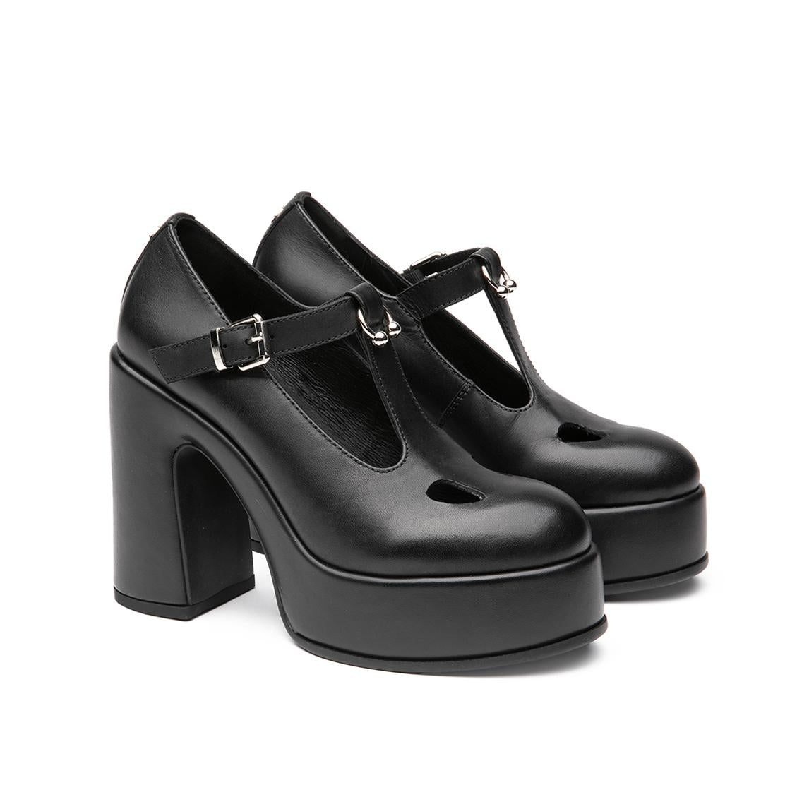 Pump Cult Donna con Tacco e Plateau in Pelle Nero