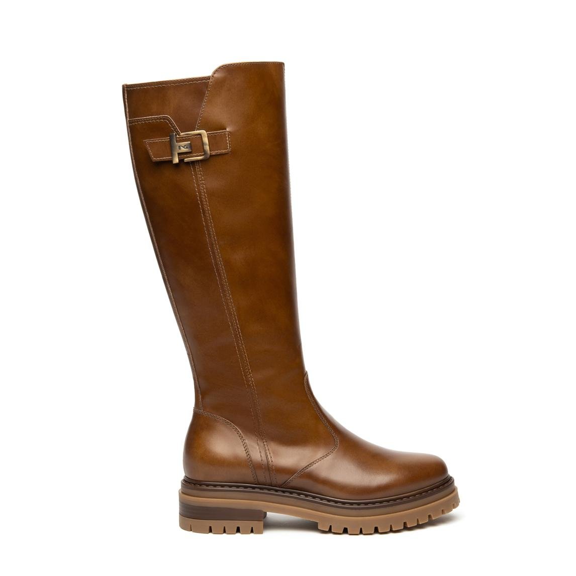 Nero Giardini Stivali Anfibi Donna in Pelle Cuoio