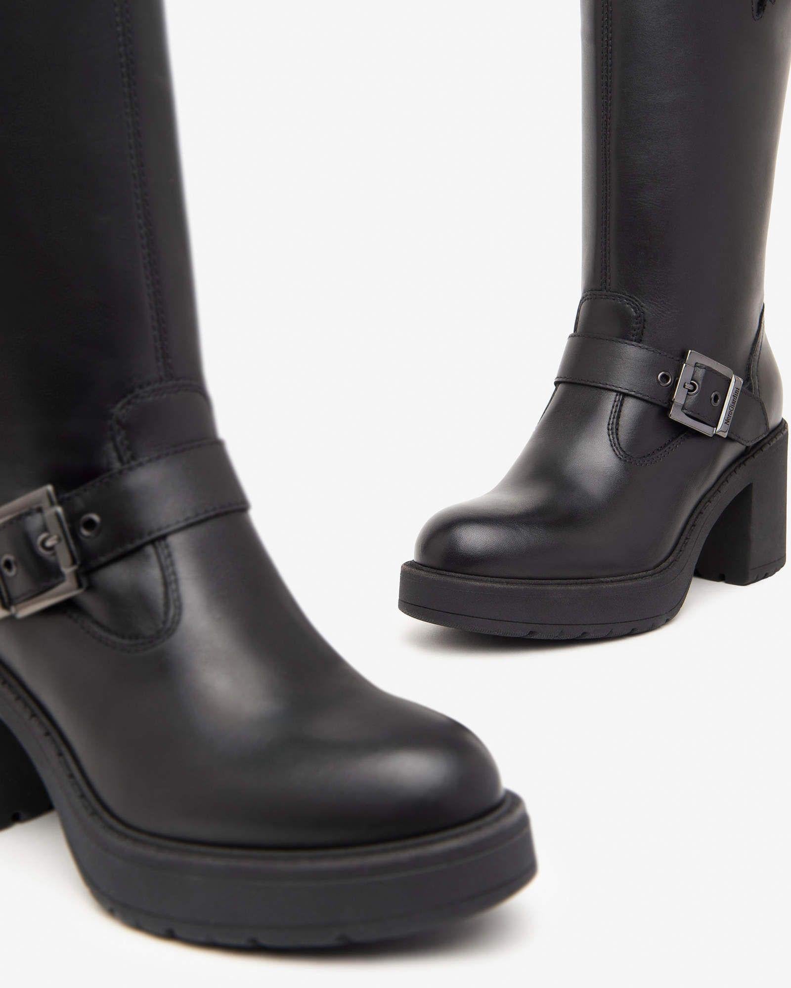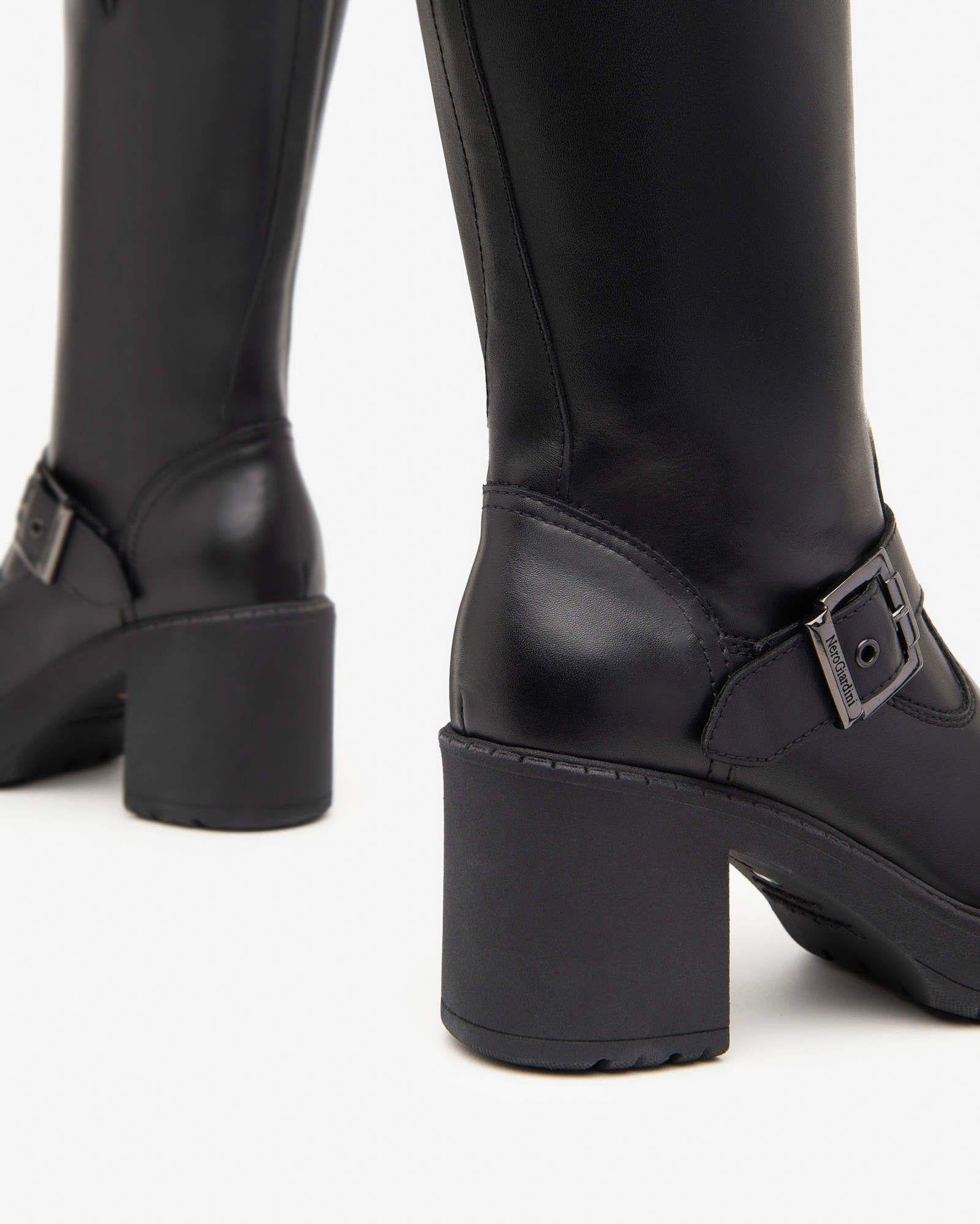 Nero Giardini Stivali Donna con Tacco in Pelle Nero
