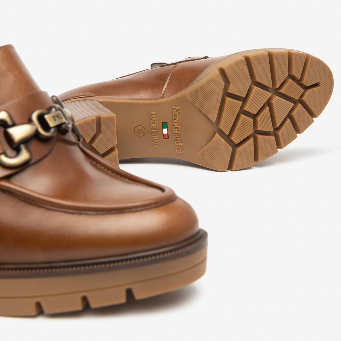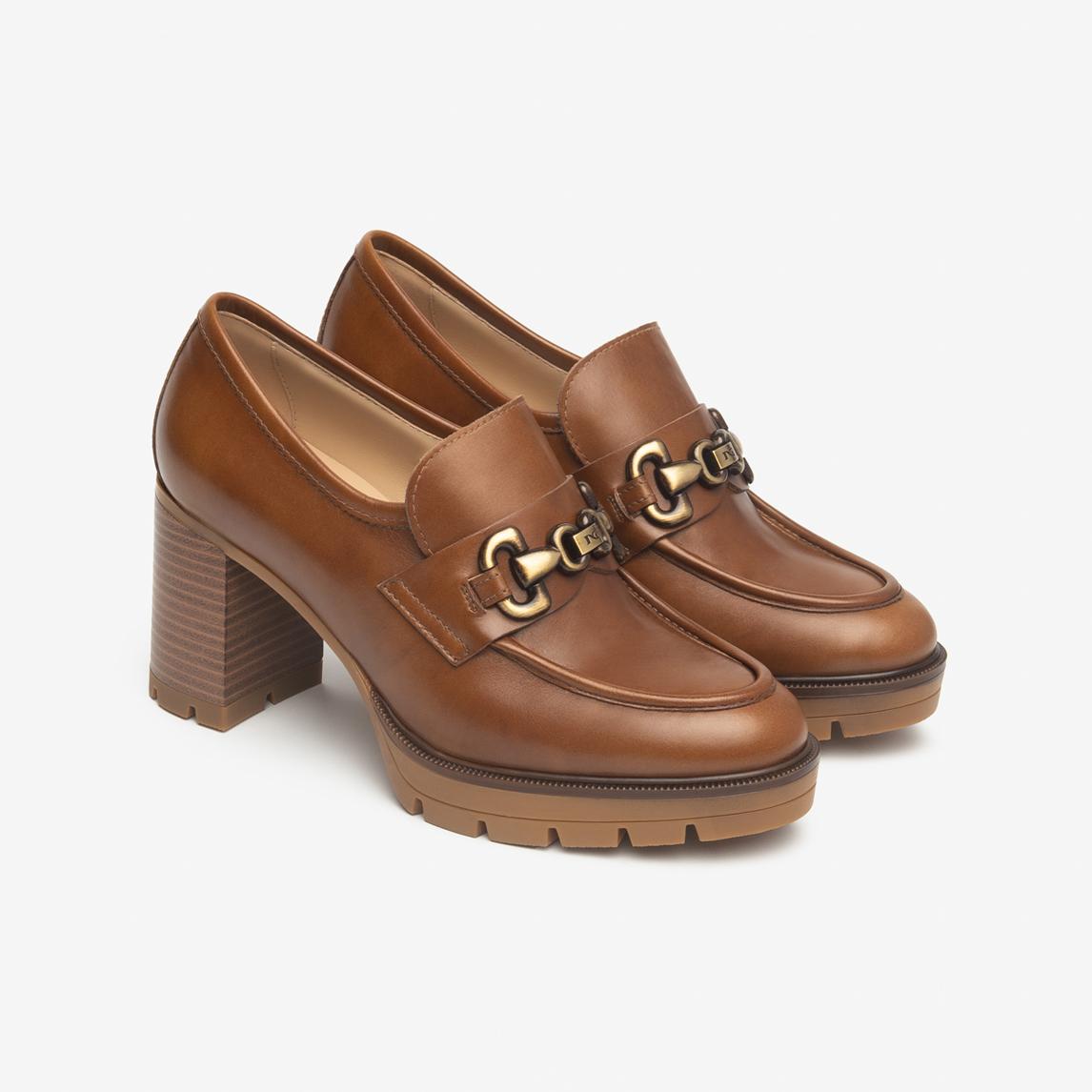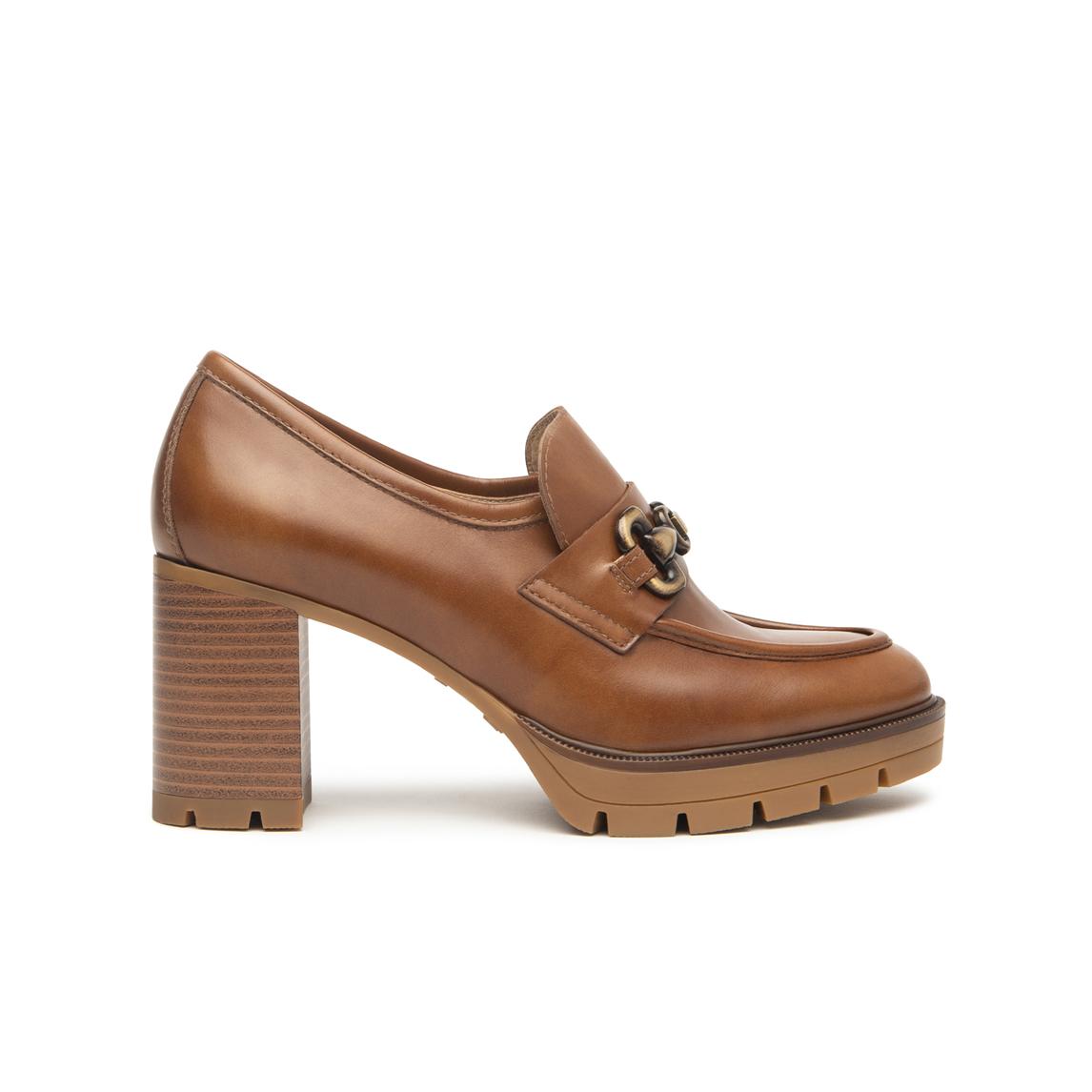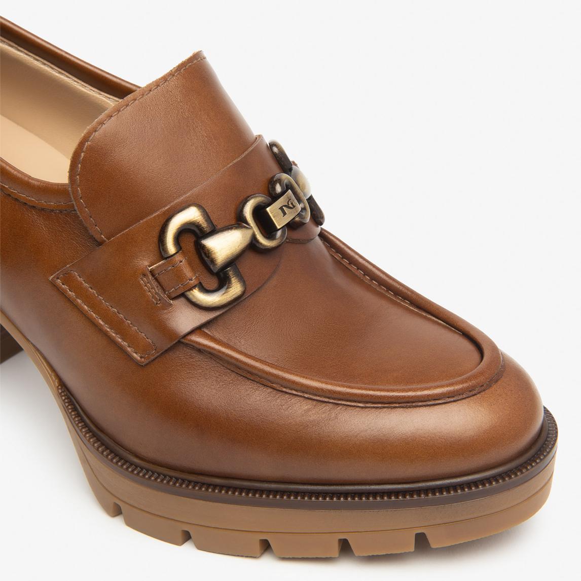 Nero Giardini Mocassini Donna con Tacco e Morsetto in Pelle Cuoio