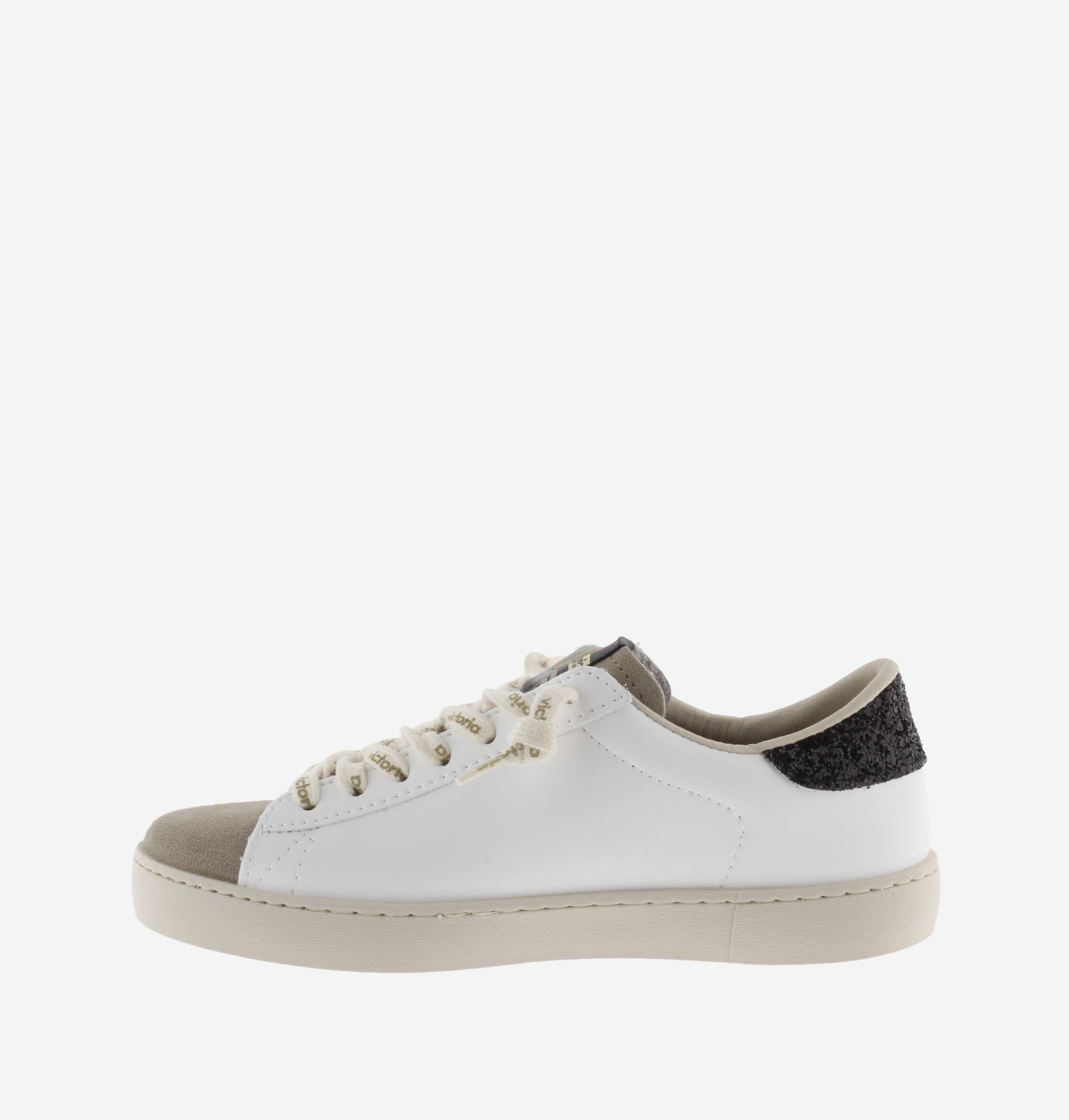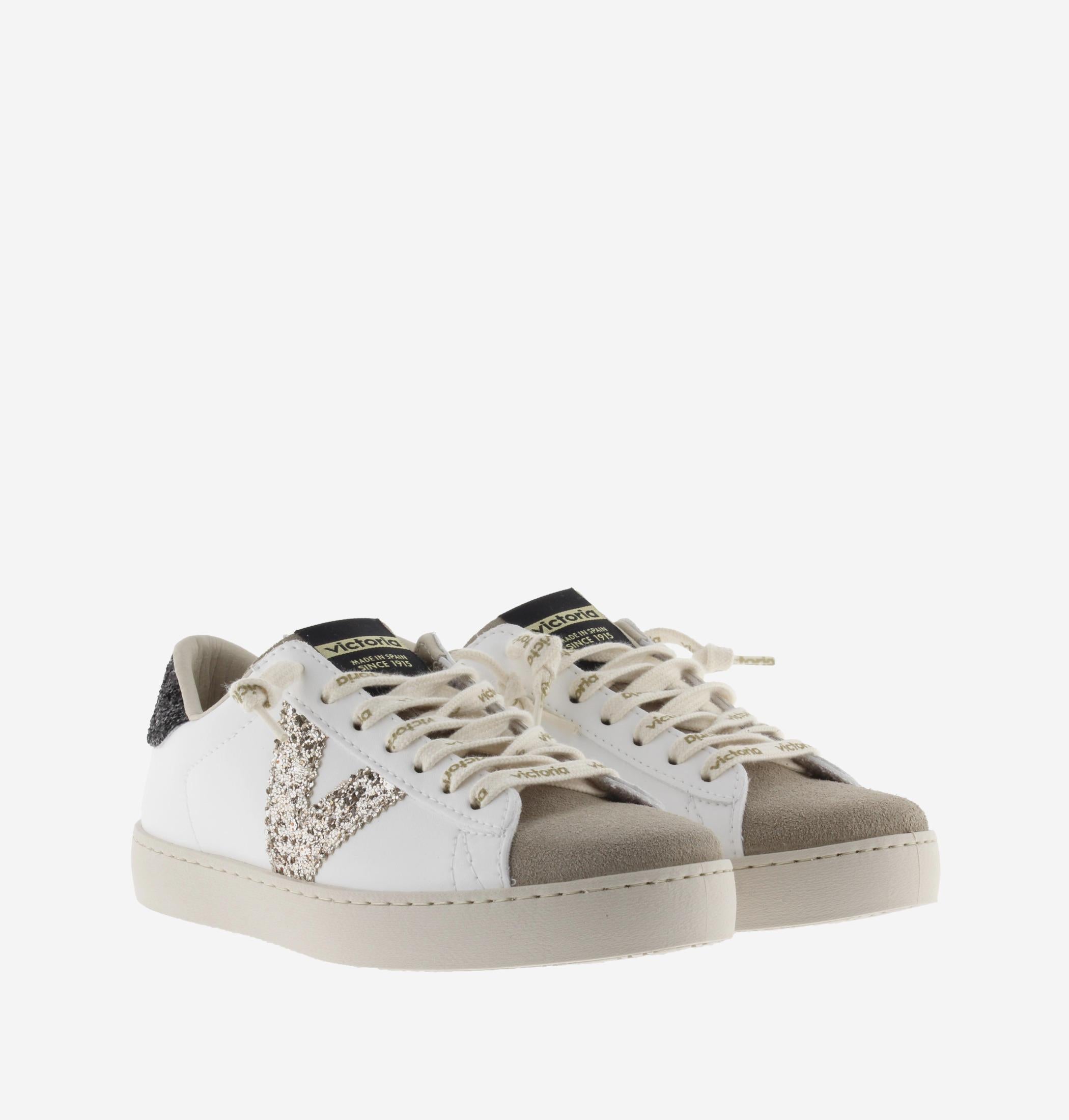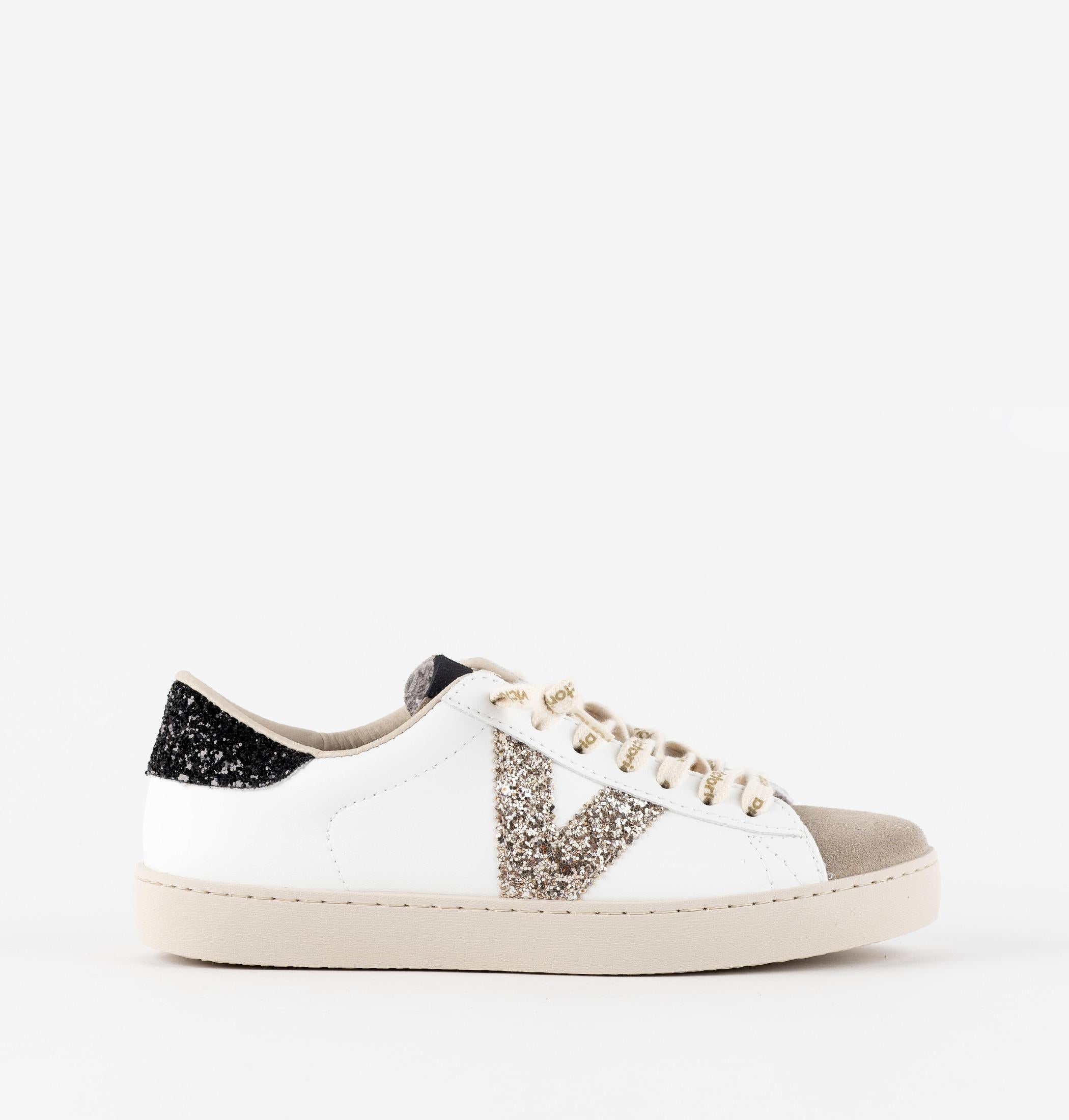 Sneakers Victoria Donna Bassa Pelle Bianco Glitter