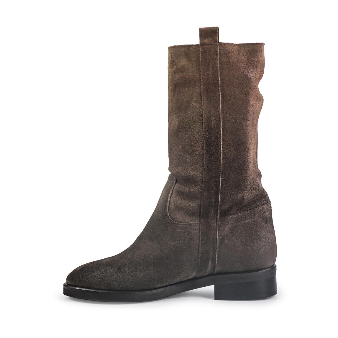 Spatarella Stivaletti Donna Tacco Basso Tubolare in Pelle Ingrassata Taupe