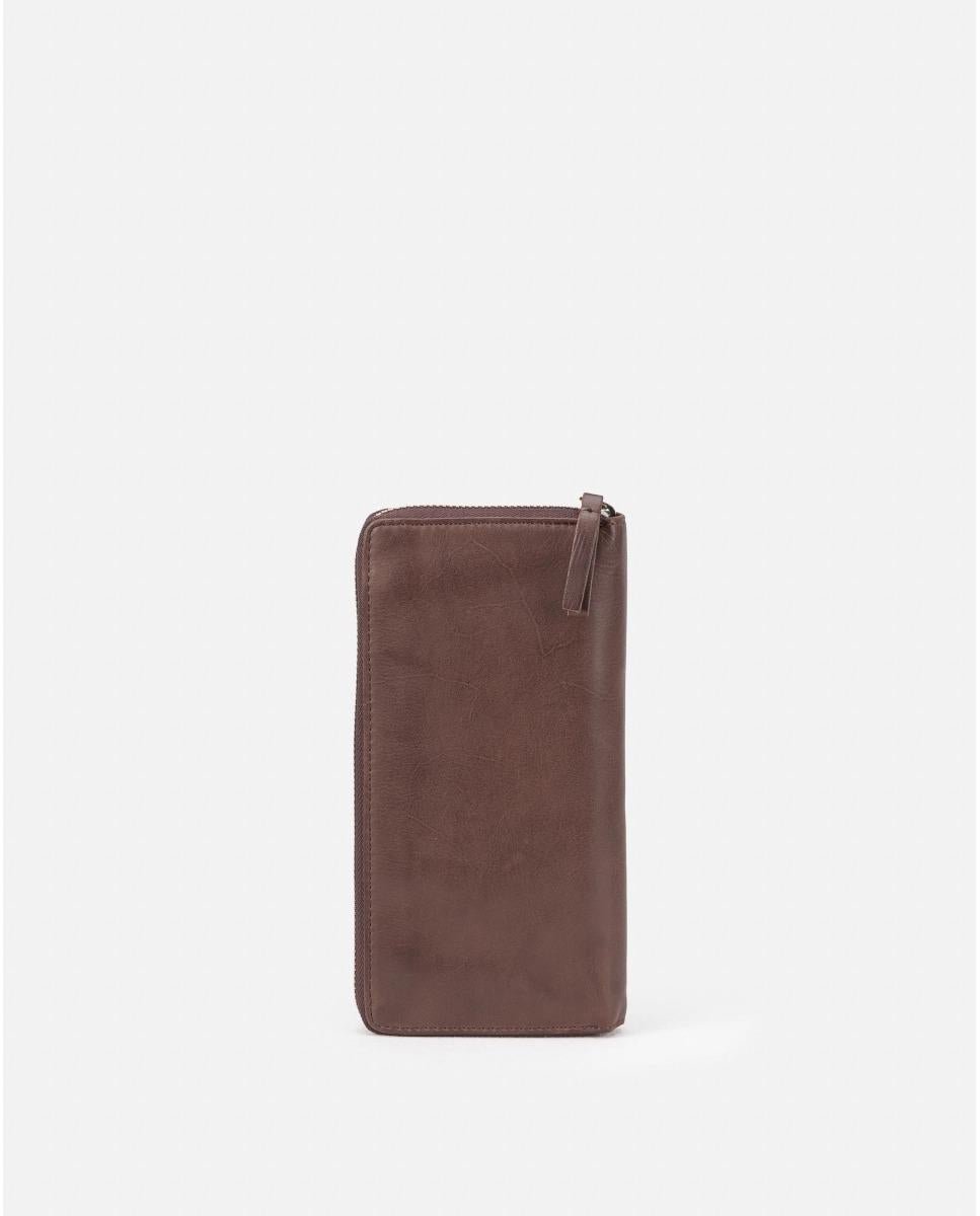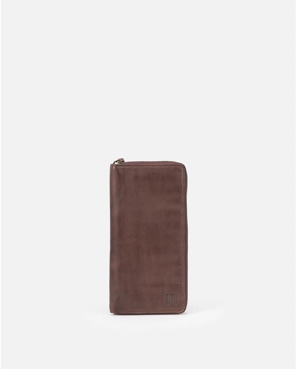 Biba Portafogli Donna Lungo con Zip in Pelle Marrone