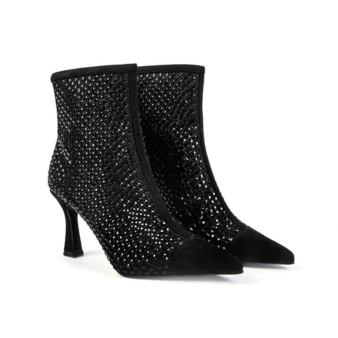 Exe Stivaletti Strass Gioiello Tacco Alto Nero