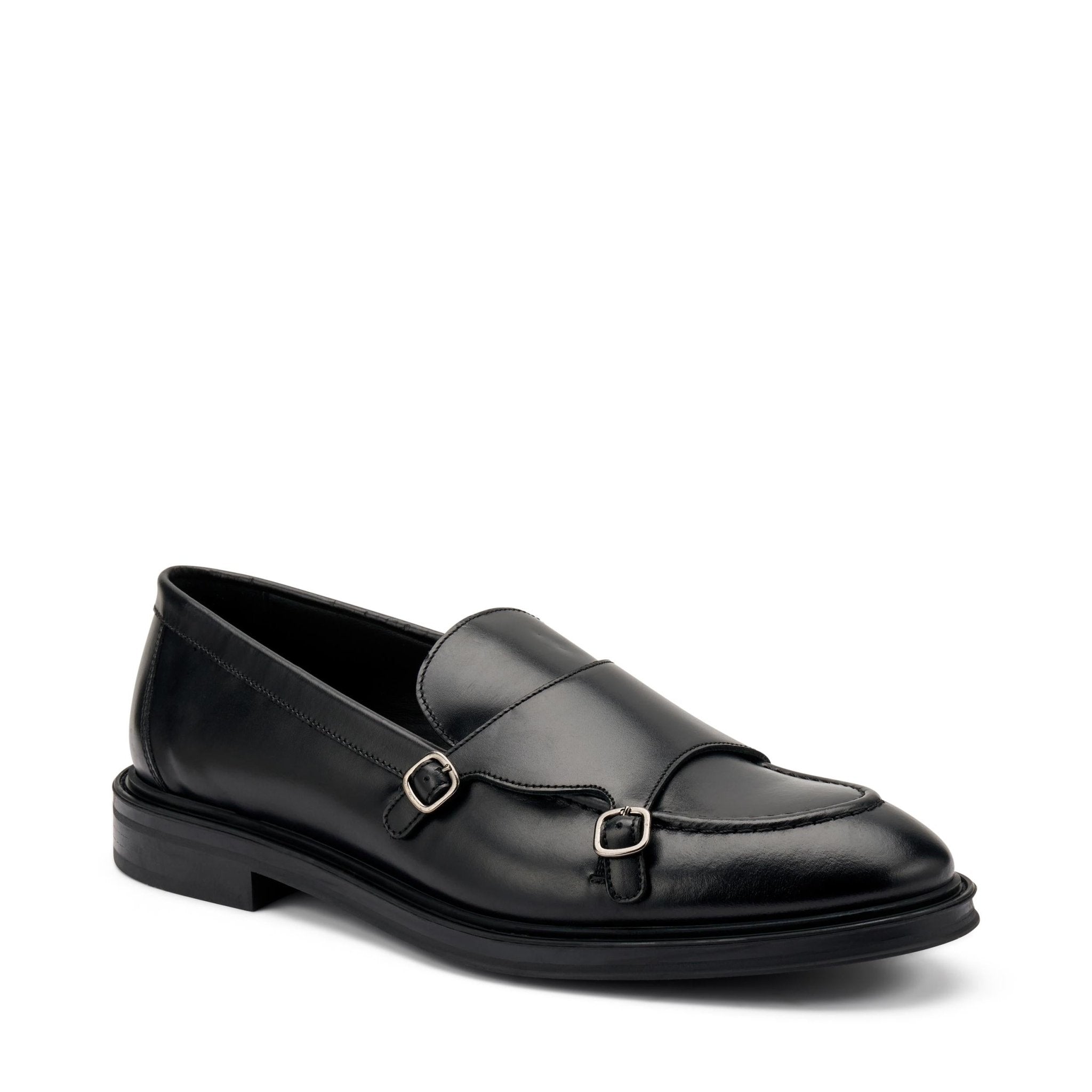 Frau Mocassini Uomo con Doppia Fibbia in Pelle Nero