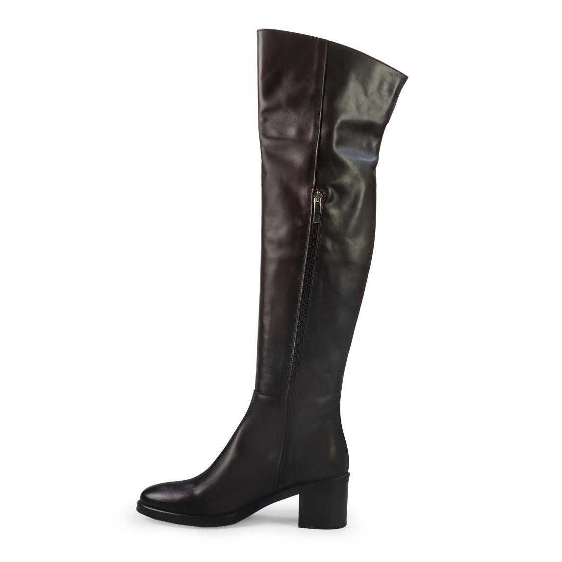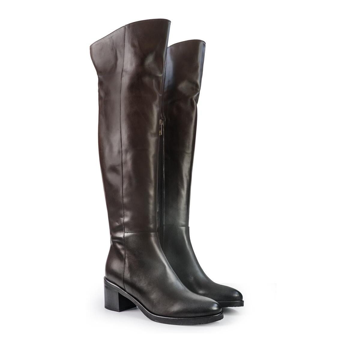 Gianni Crasto Stivale Donna in Pelle Marrone con Tacco Medio e Gambale Alto Sopra il Ginocchio