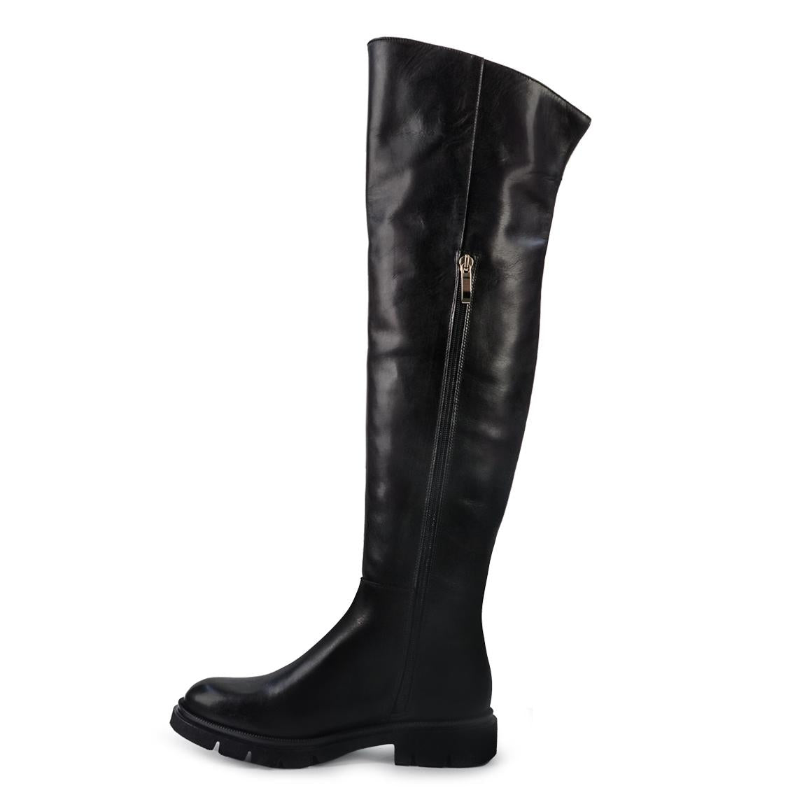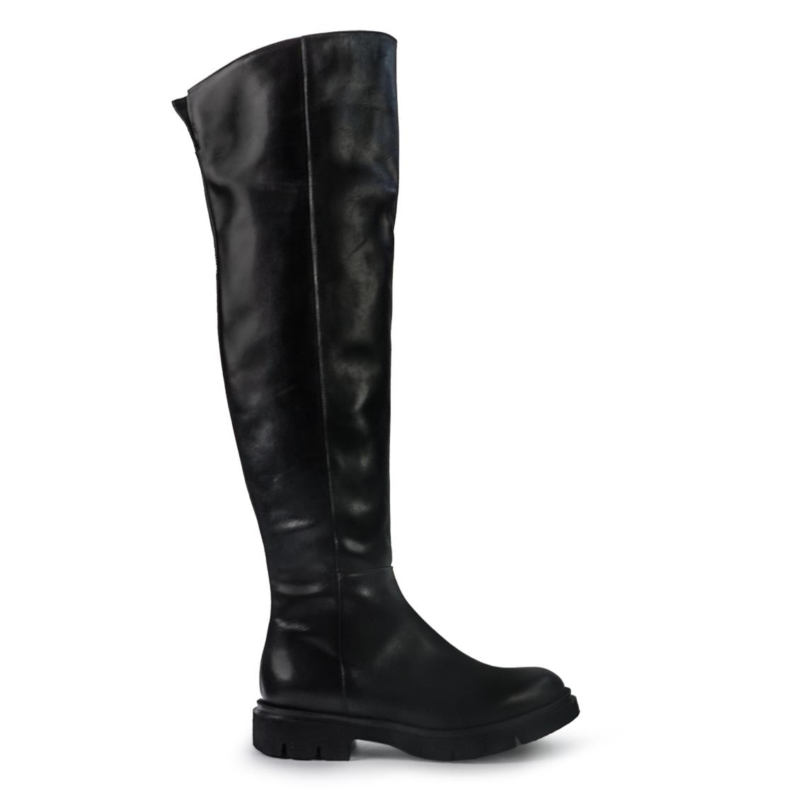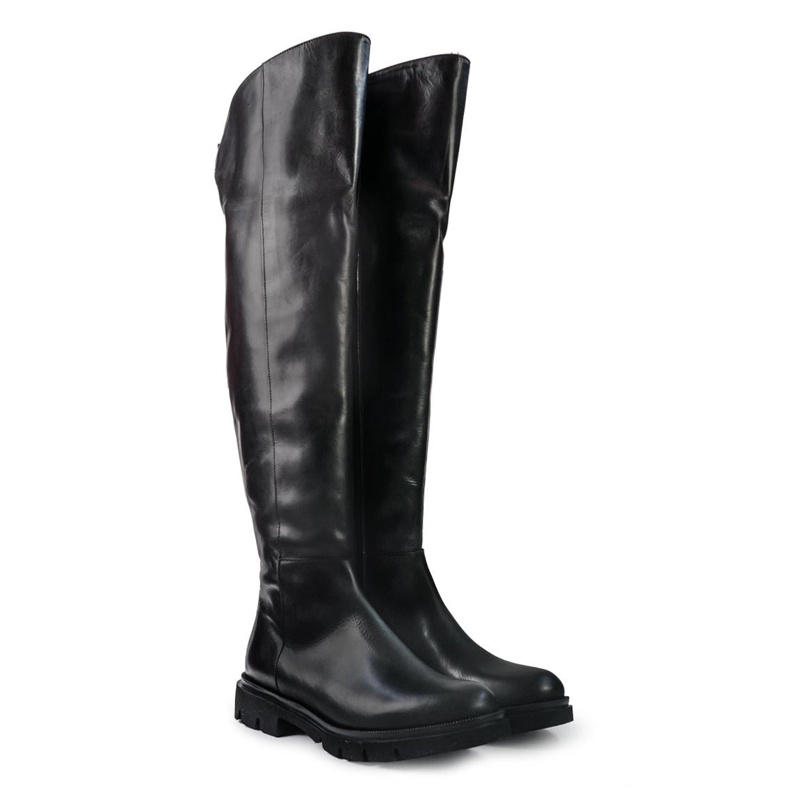 Stivale da donna Gianni Crasto in pelle nera, con gambale overknee sopra il ginocchio e tacco medio. Dotato di zip laterale 3/4 per una calzata pratica e confortevole.