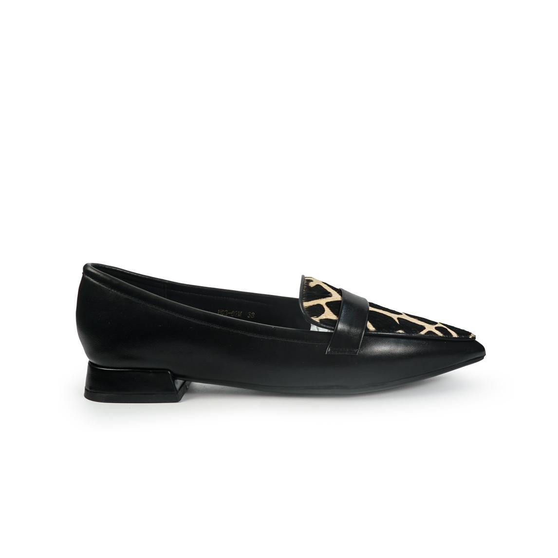 Mocassini Donna Tacco Basso in Pelle Nera e Cavallino Animalier