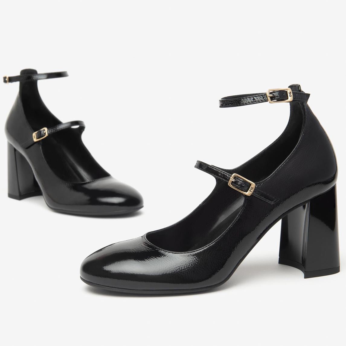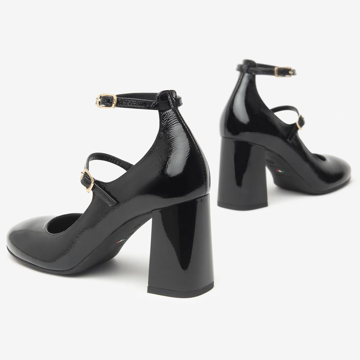Nero Giardini Mary Jane con Doppio Cinturino in Vernice Nero