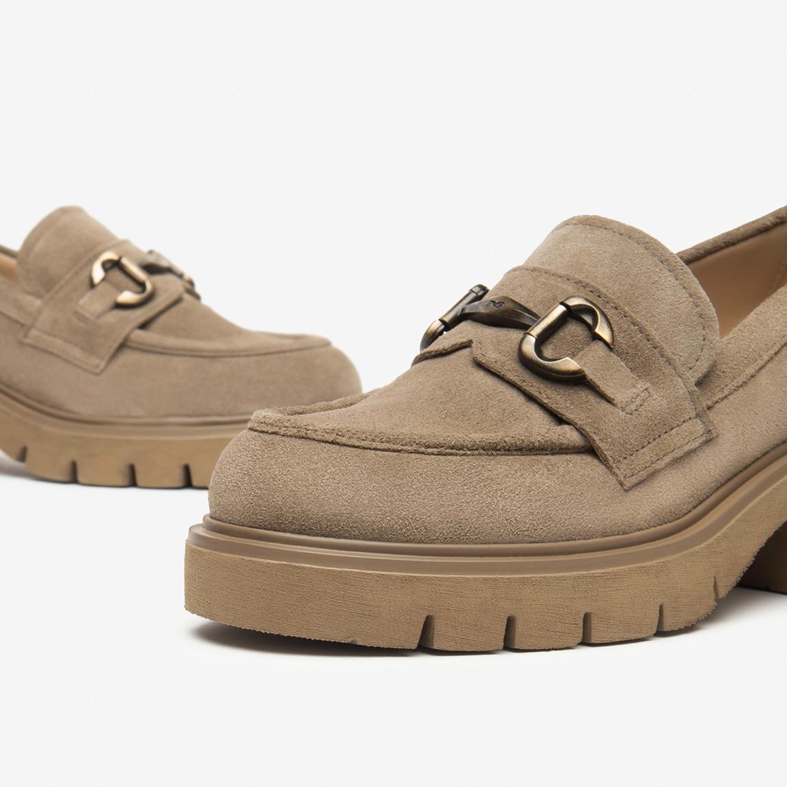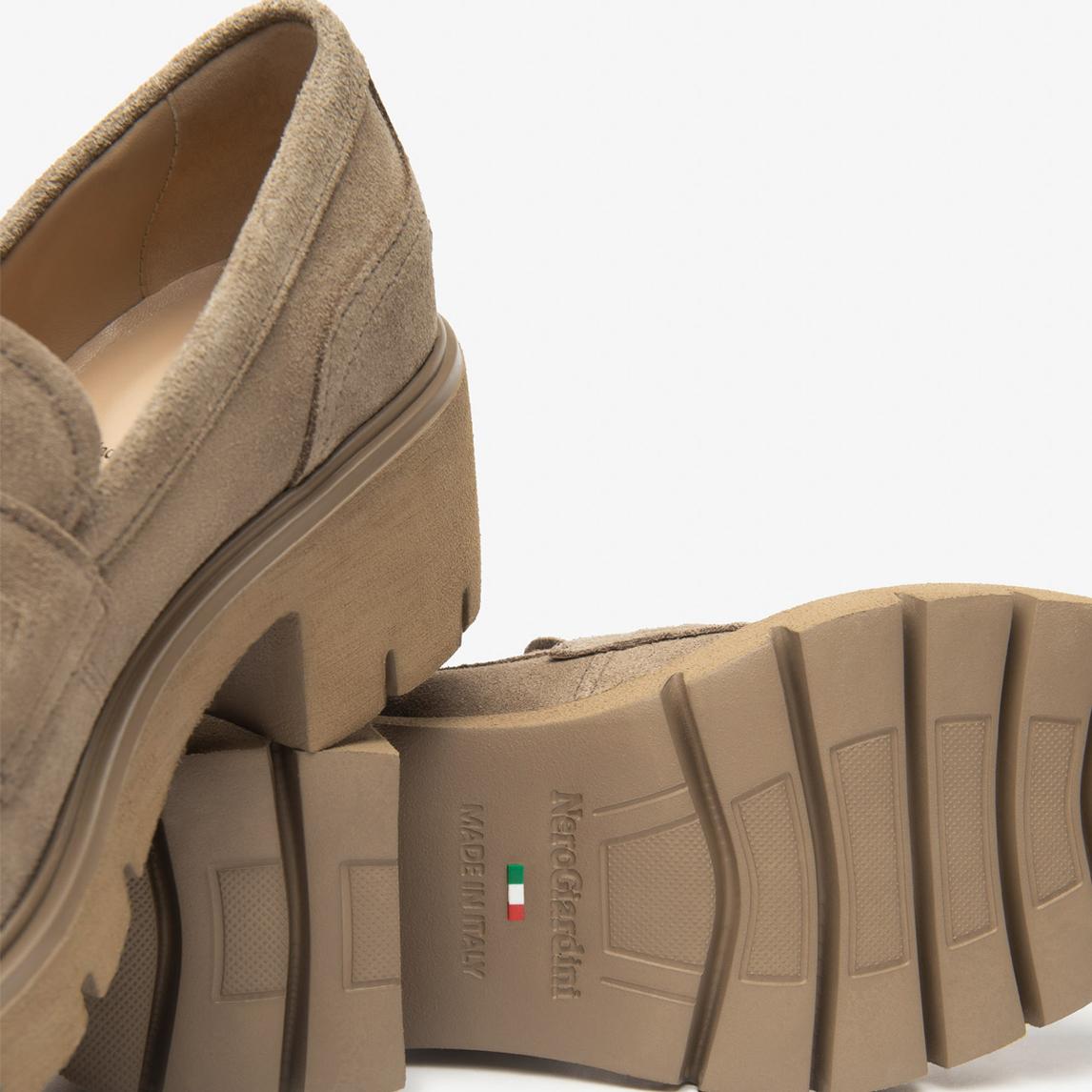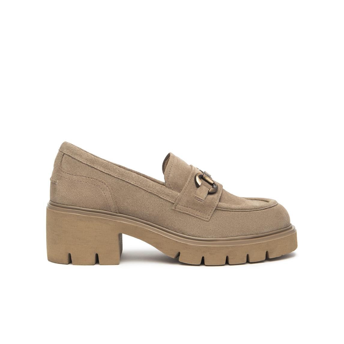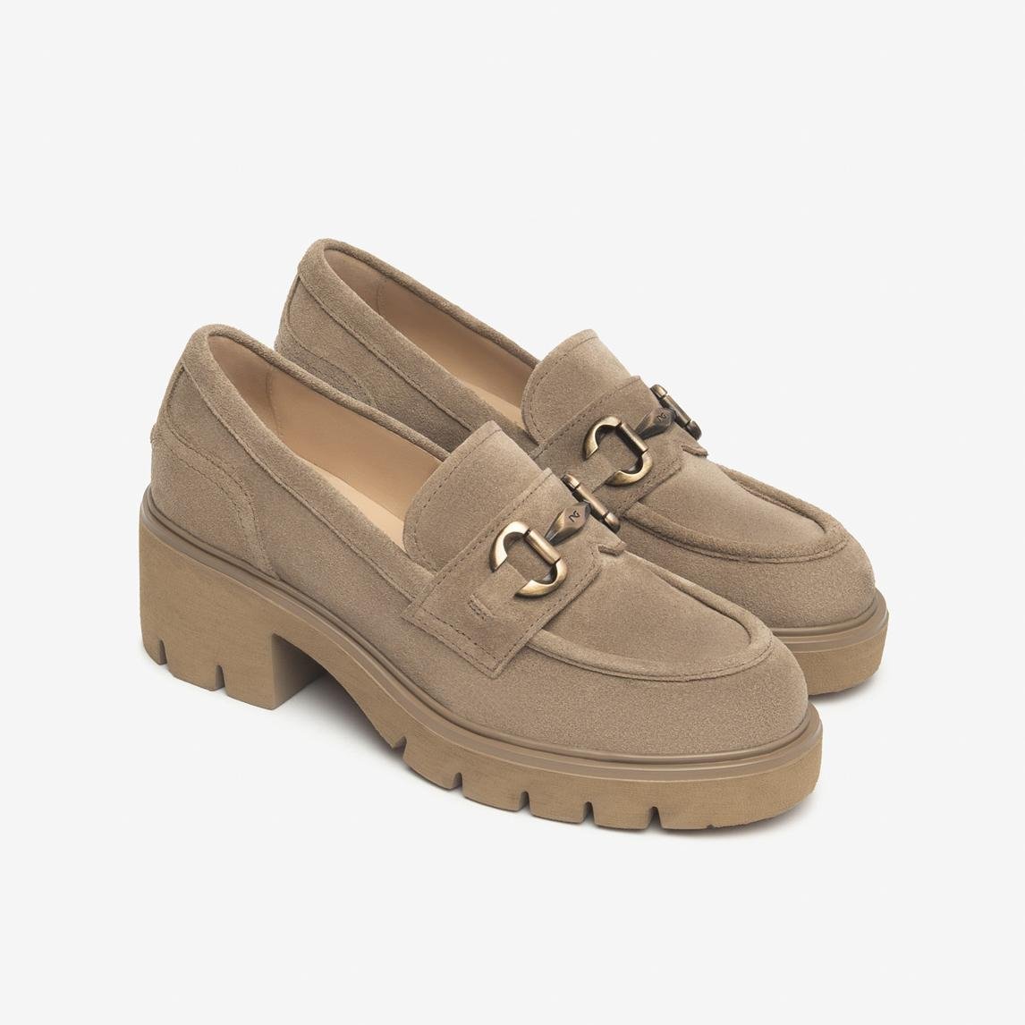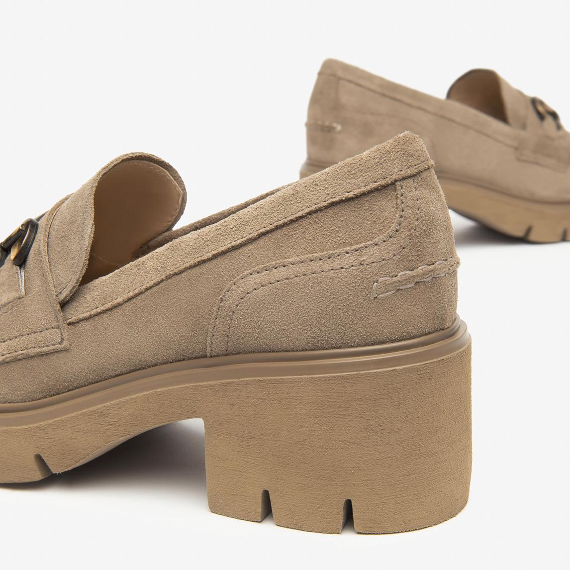 Nero Giardini Mocassini Donna con Tacco e Morsetto in Camoscio Argilla