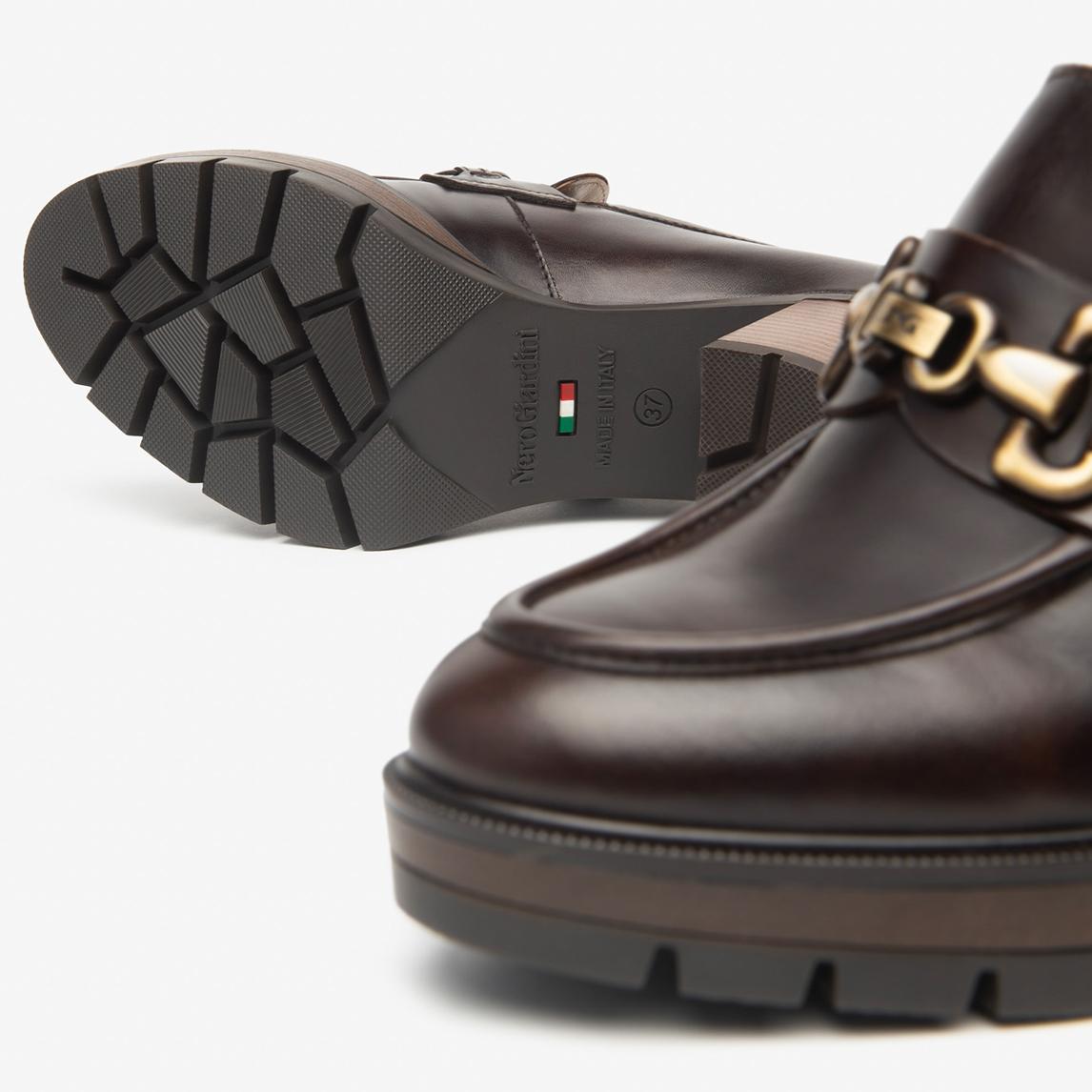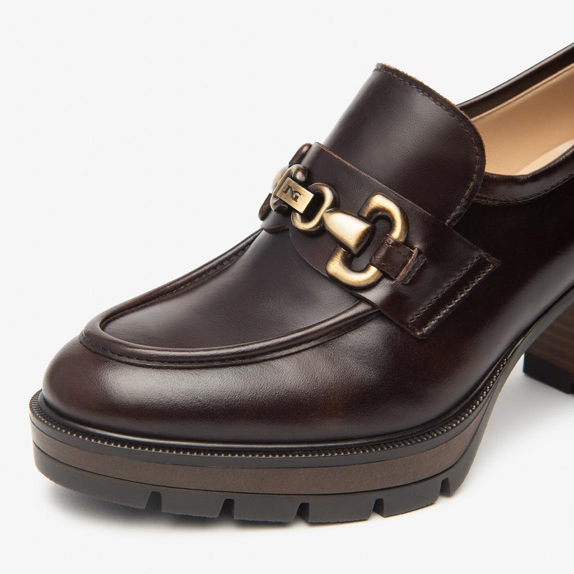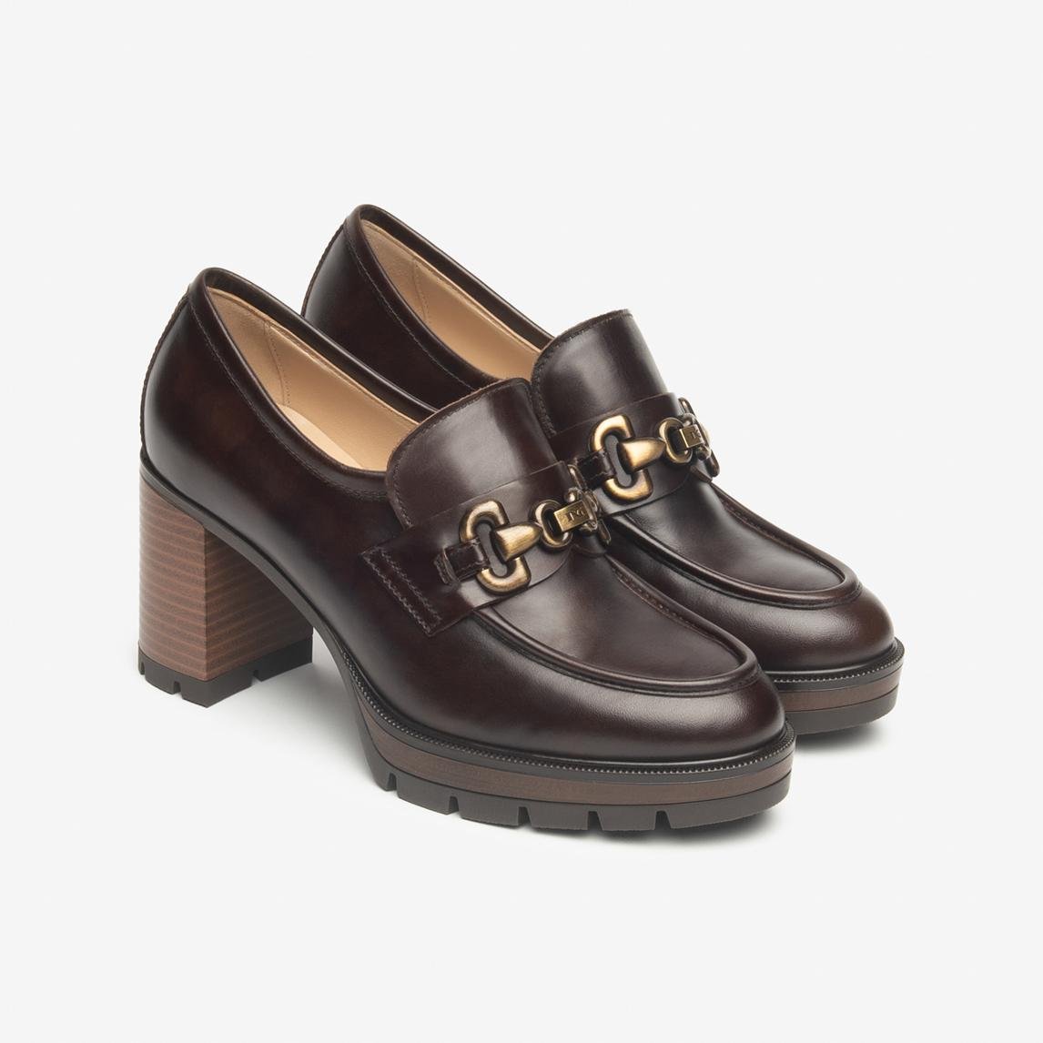 Nero Giardini Mocassini Donna con Tacco e Morsetto in Pelle Testa di Moro