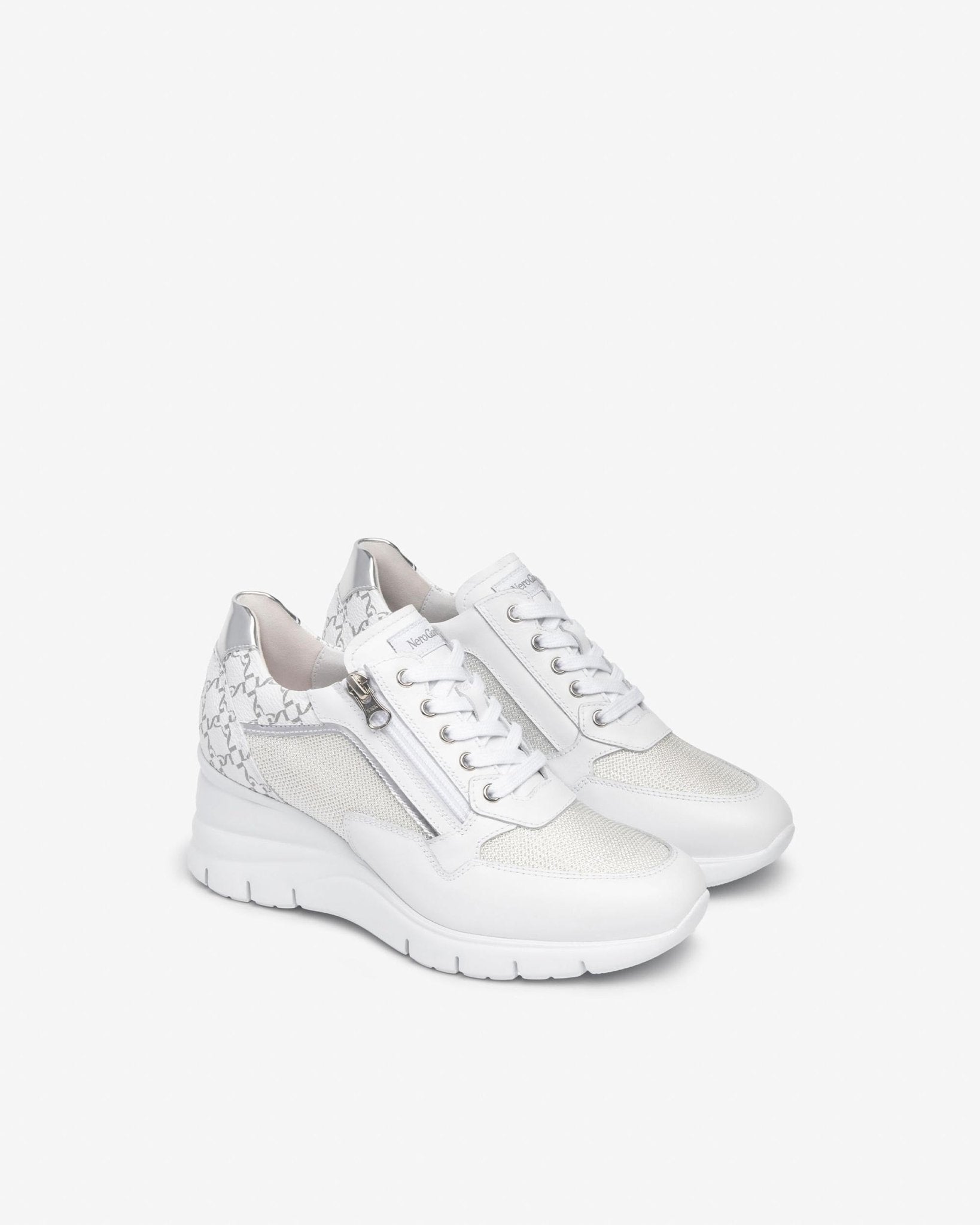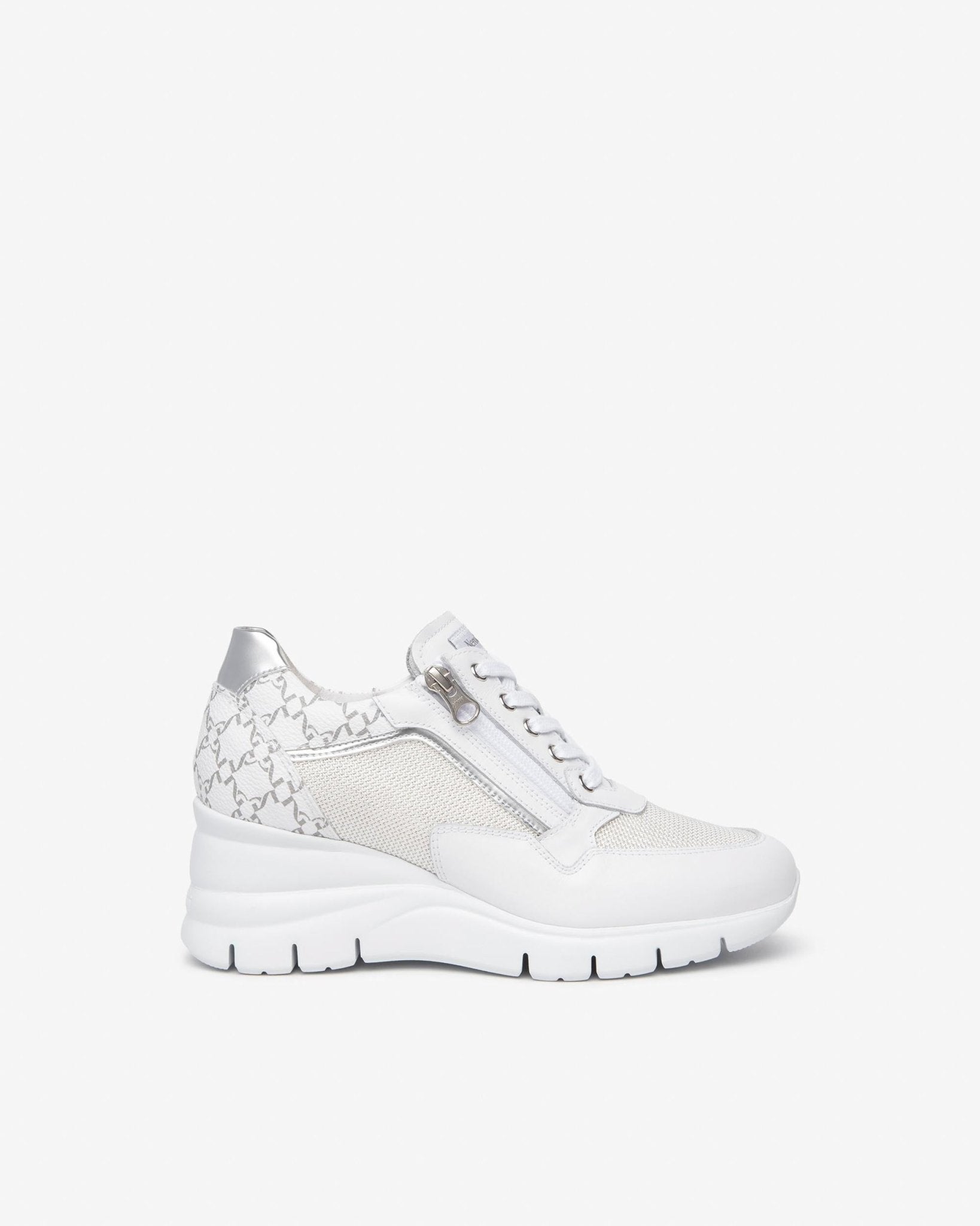 Nero Giardini Sneakers Donna con Zeppa in Pelle Bianca
