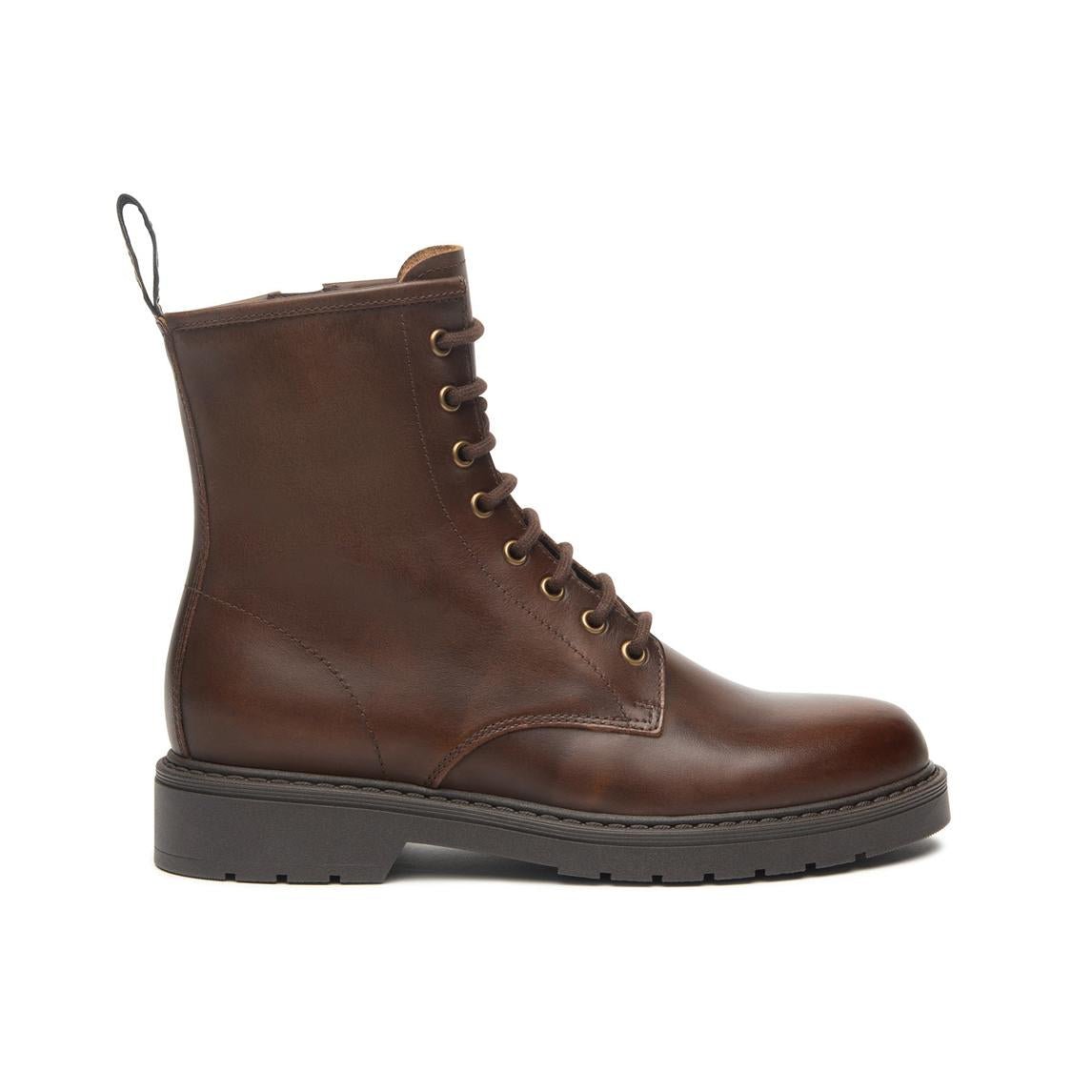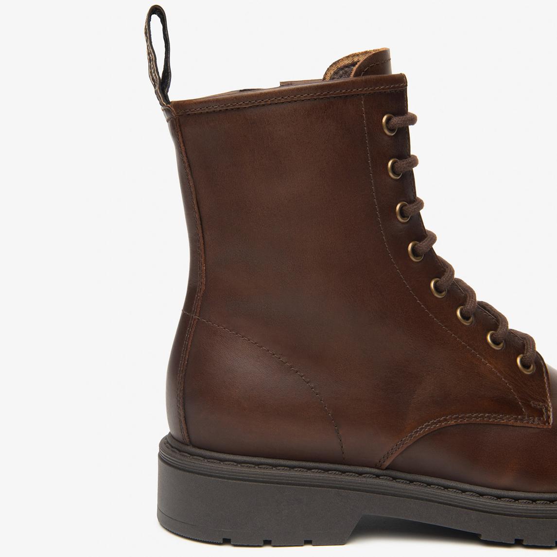Stivaletto anfibio in pelle con tendiscarpa e doppia chiusura lacci e zip.