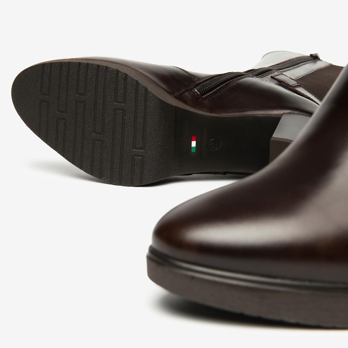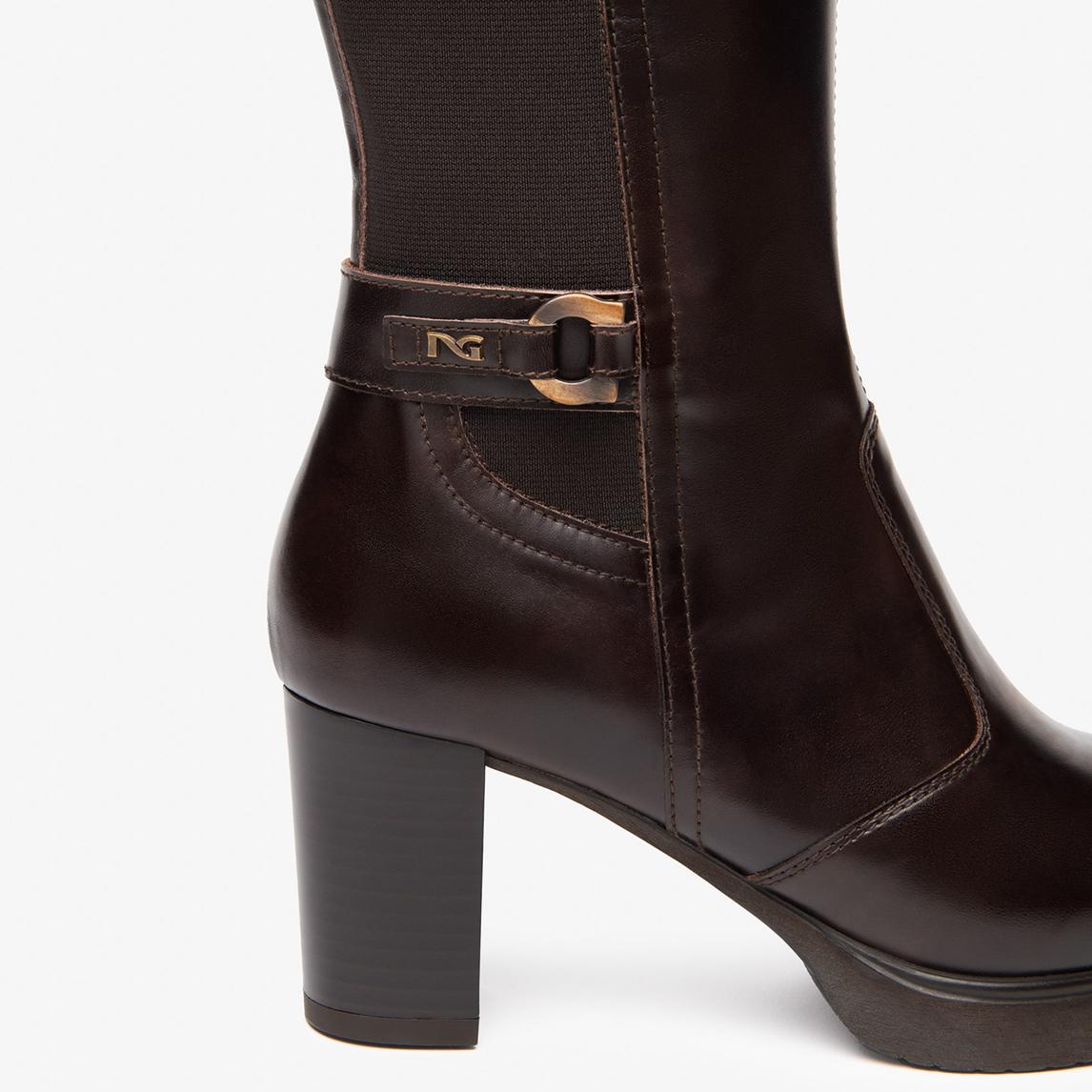 Stivale in pelle con plateau e tacco fasciato cuoio in tinta.