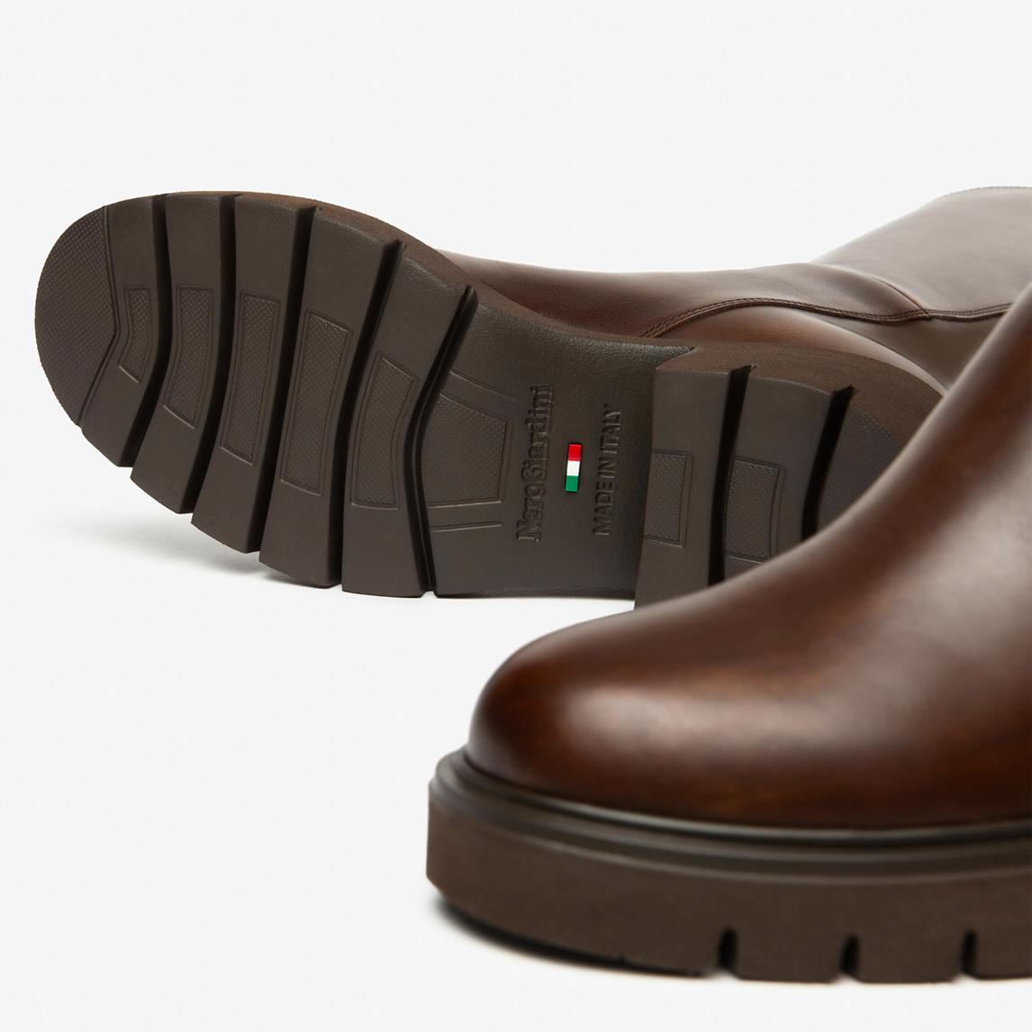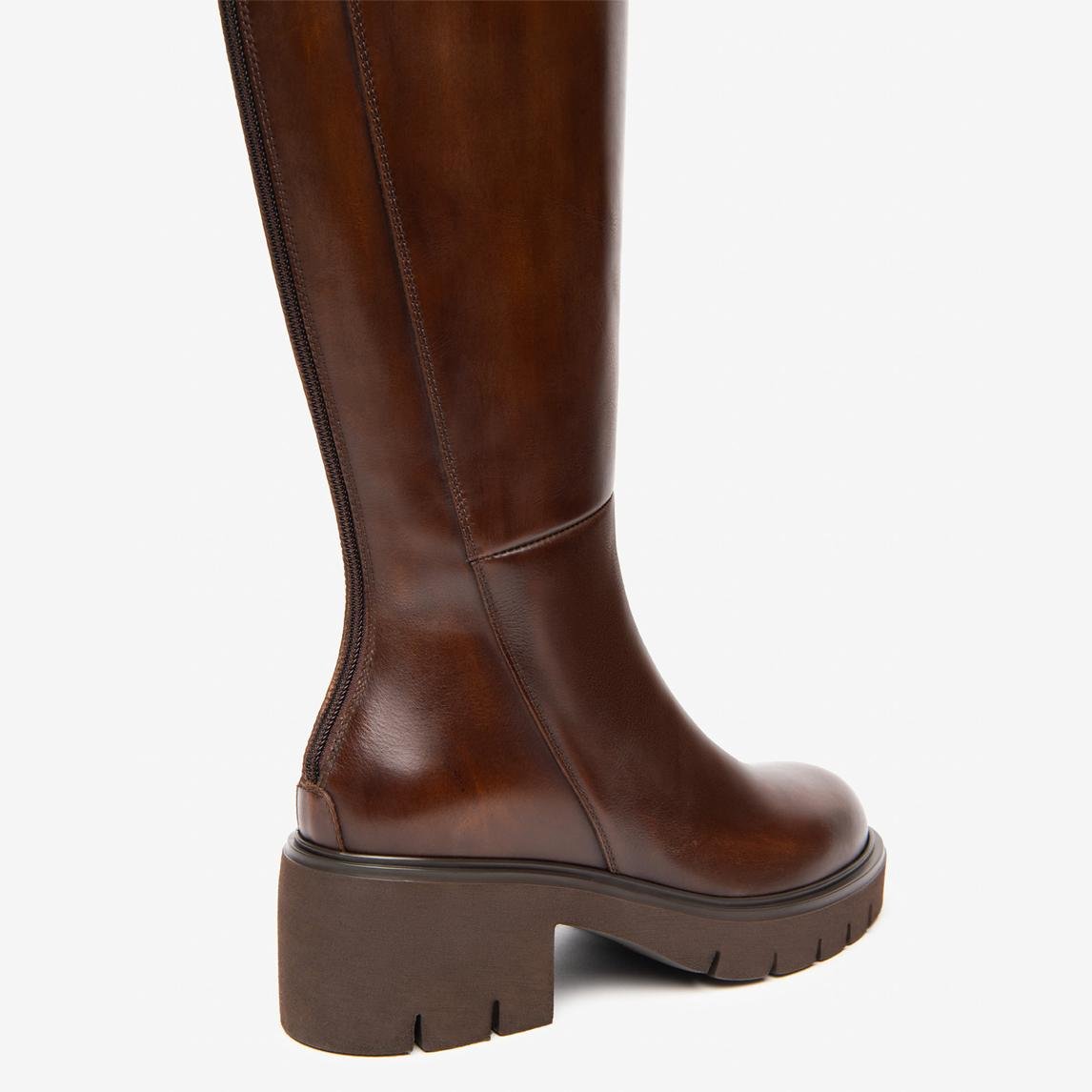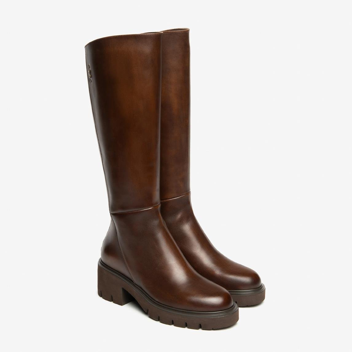 L'essenza del Made in Italy in un classico contemporaneo. Realizzato in vera pelle marrone, questo stivale con tacco chunky e chiusura zip al tallone, è progettato per la donna che non rinuncia all'altezza, ma esige stabilità e comfort in ogni occasione. Un capo passe-partout versatile che aggiunge un tocco di grinta e sofisticatezza a qualsiasi outfit, dal denim all'abito elegante.