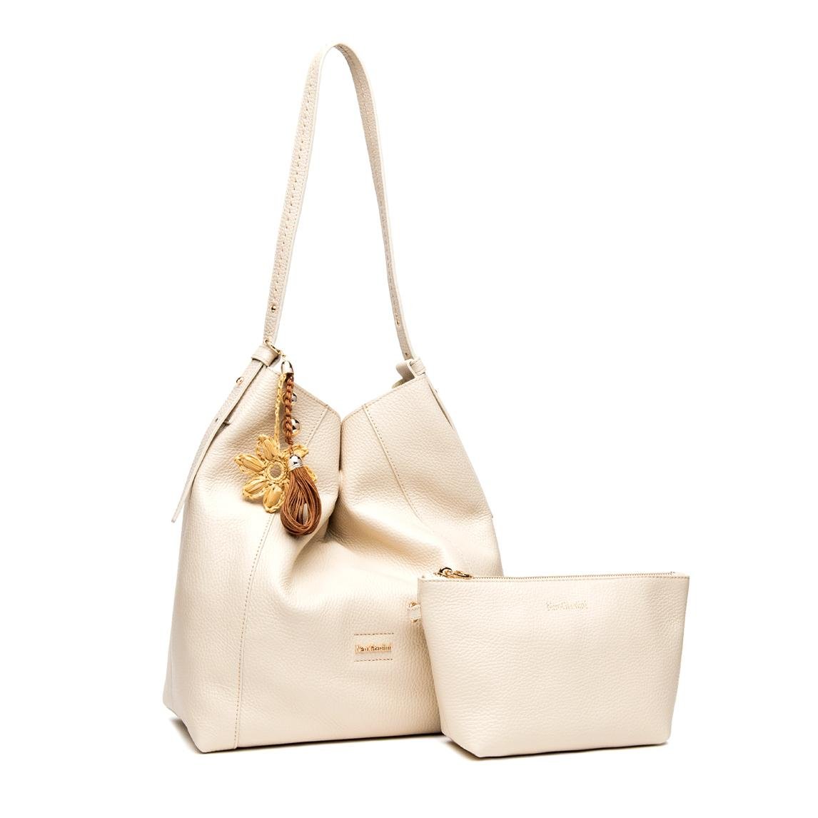Borsa da donna in pelle con portachiavi in tinta. La borsa è dotata di un borsello interno con zip, tenuto in sucurezza da un gancetto. Chiusura con bottone magnetico e logo in metallo.
