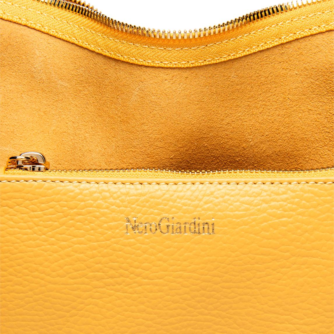Borsa da donna dotata di tracolla removibile in pelle. La borsa ha un borsello interno con zip, tenuto in sucurezza da un gancetto. Chiusura borsa con cerniera lampo. Logo brand in metallo.