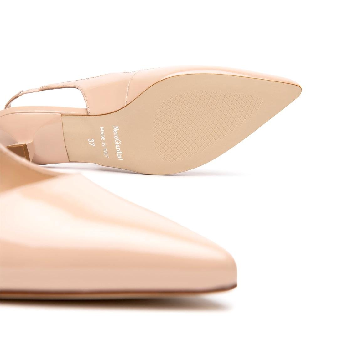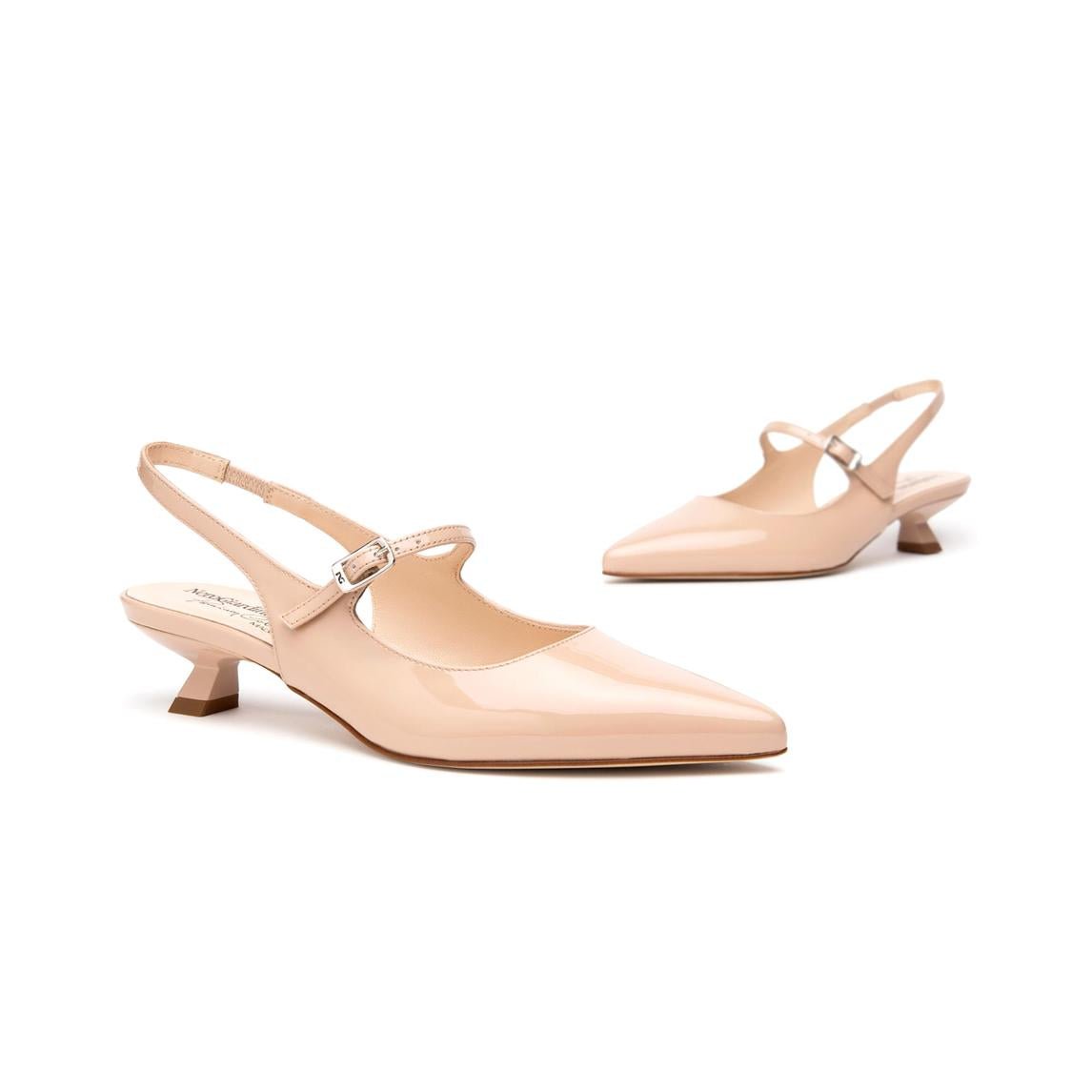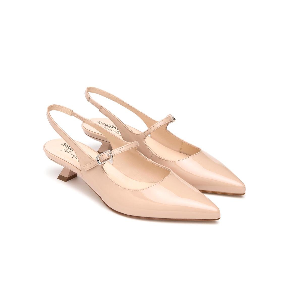 NeroGiardini Chanel Tacco Basso Rocchetto e Punta in Vernice Cipria