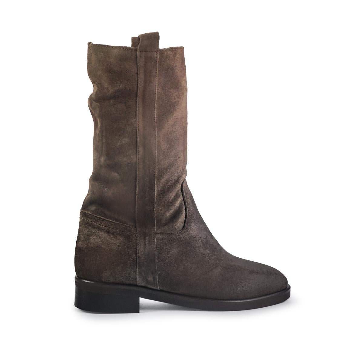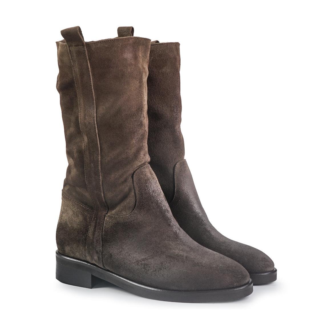 Spatarella Stivaletti Donna Tacco Basso Tubolare in Pelle Ingrassata Taupe