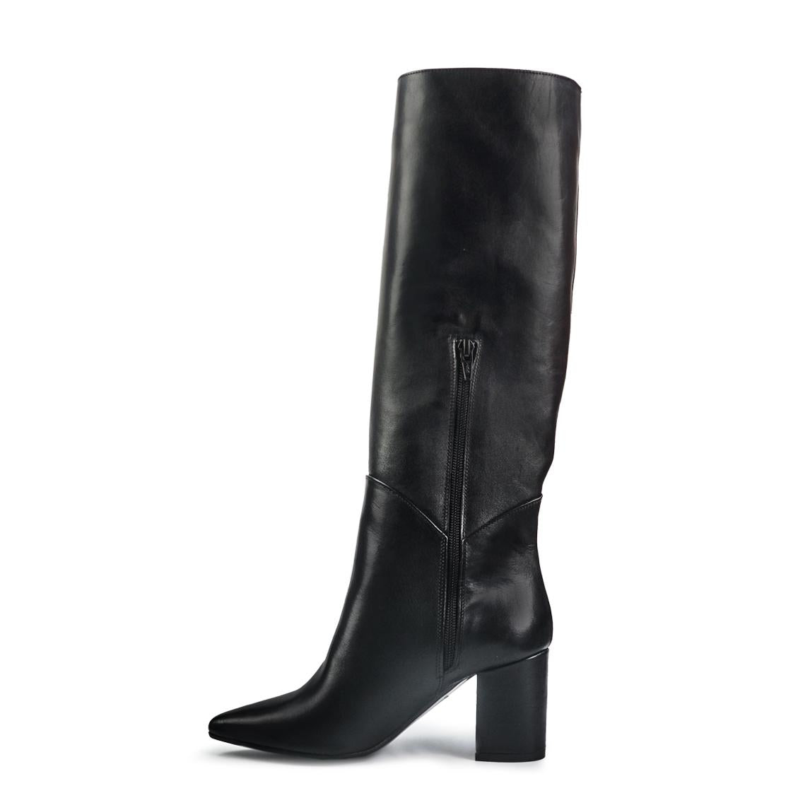 Spatarella Stivali Donna a Punta con Tacco in Pelle Nero