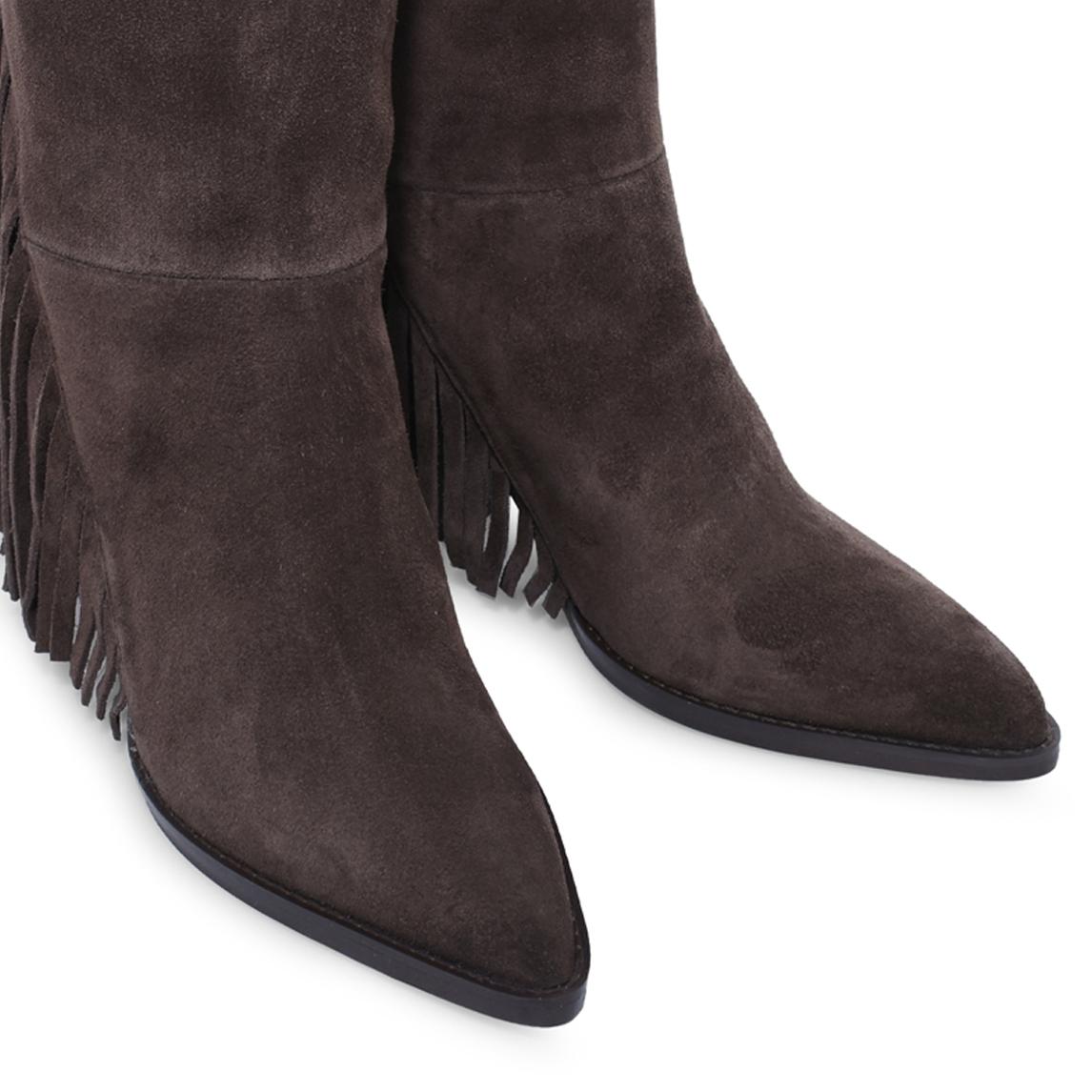 Tsakiris Mallas Stivali Texani Donna con Frange in Camoscio Testa di Moro