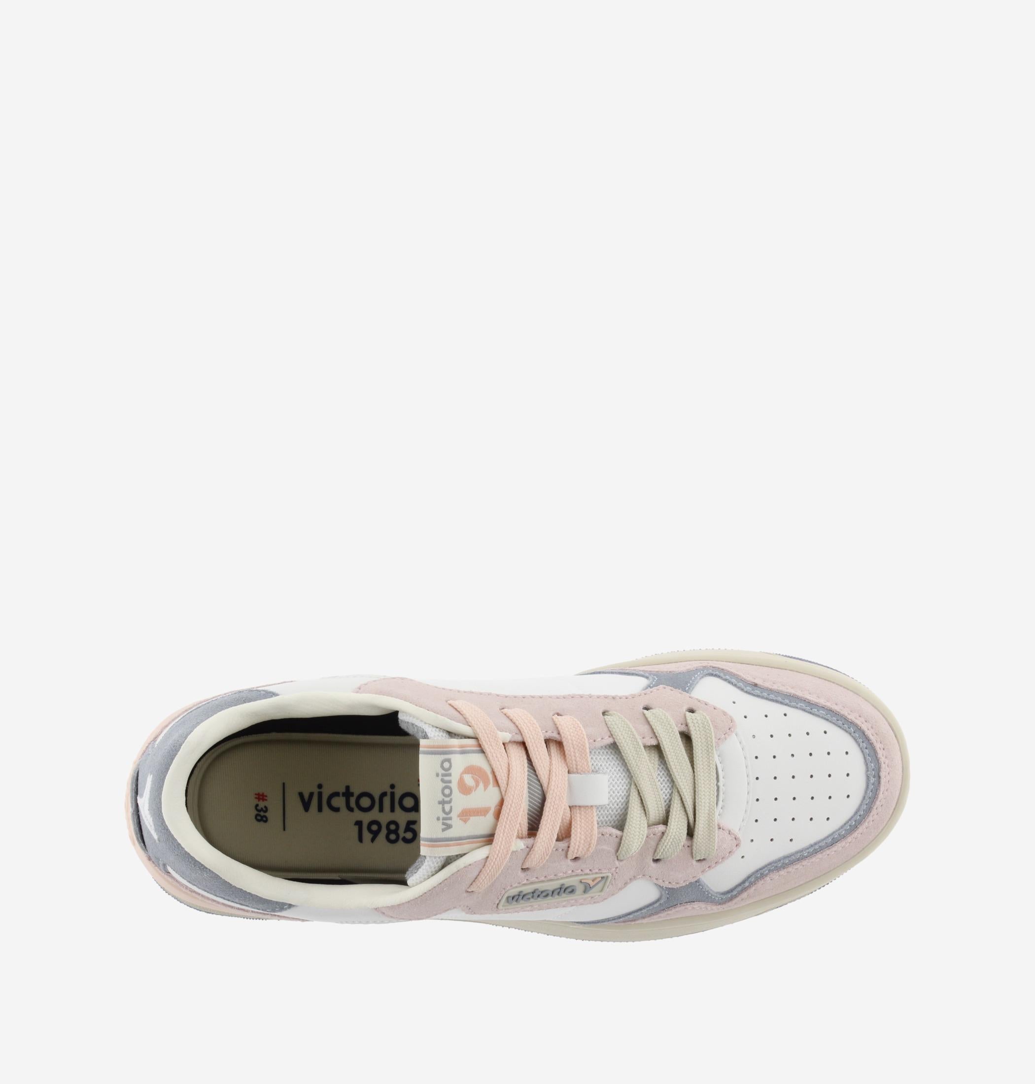 Sneakers Victoria 1985 con dettagli in camoscio e soletta imbottita ergonomica estraibile. Fondo gomma flessibile e antiscivolo e dotata di stabilizzatore sul tallone. Logo anni '80. Doppio laccio in dotazione di colore differente.