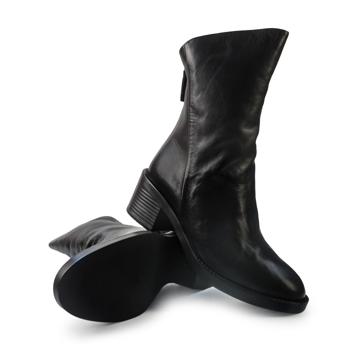 Vueva Stivaletti Donna con Tacco in Pelle Nero Taglio Obliquo
